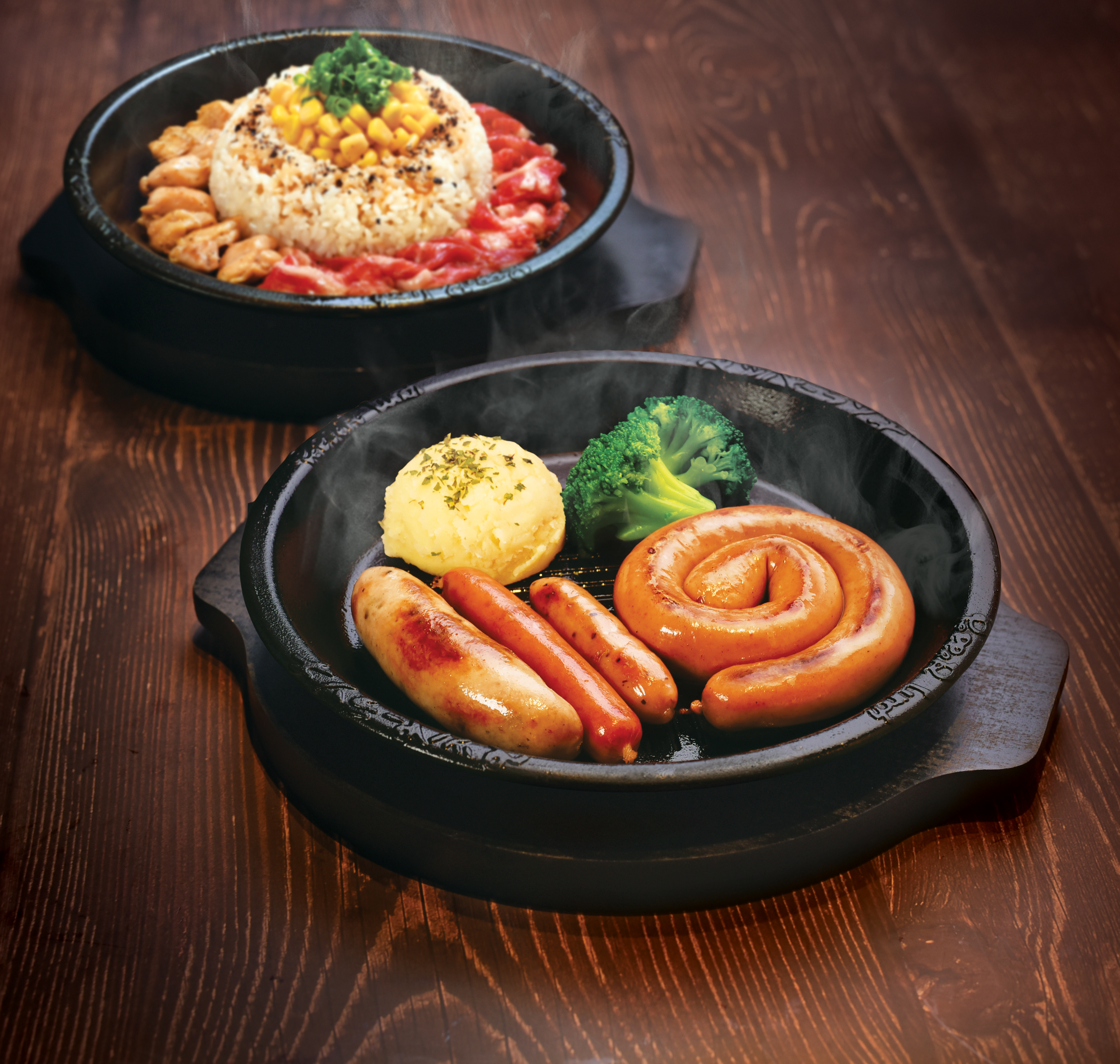 全新「德國香腸拼盤二人套餐」包括「珍寶黑椒牛肉拼雞肉飯」、首次於Pepper Lunch餐牌推出的德國香腸拼盤及香濃薯蓉。