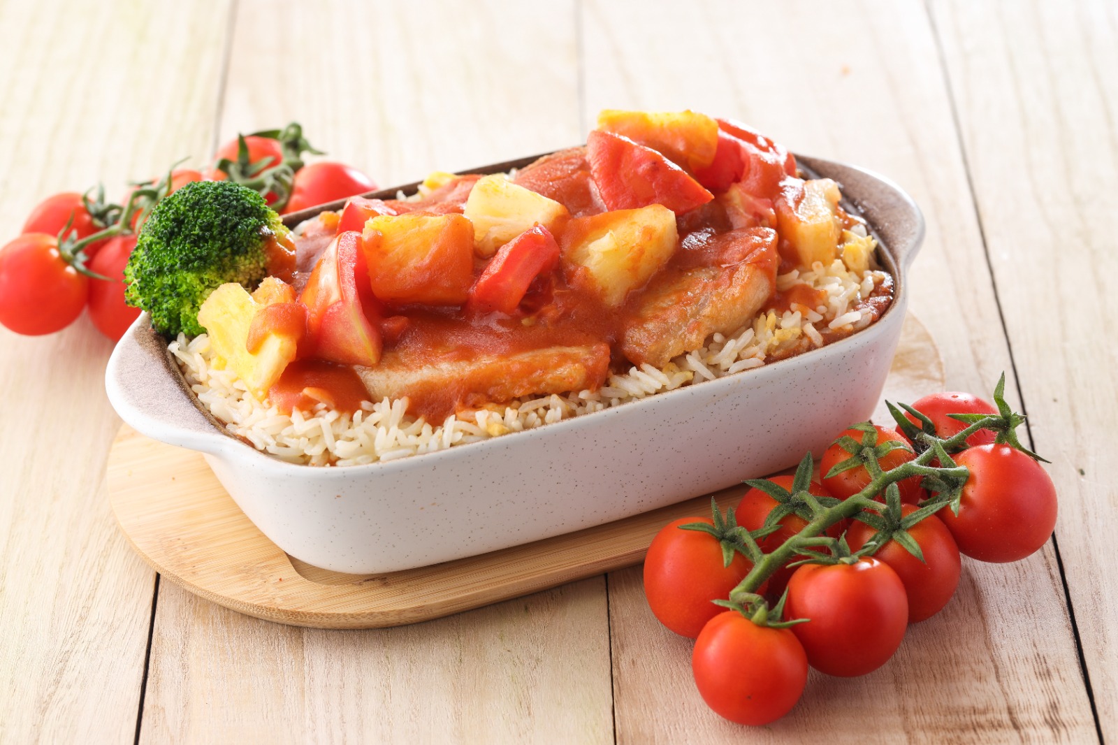 「足料焗豬扒飯」豬扒配合鮮茄秘製汁料,再加上芝士同焗至熱辣辣