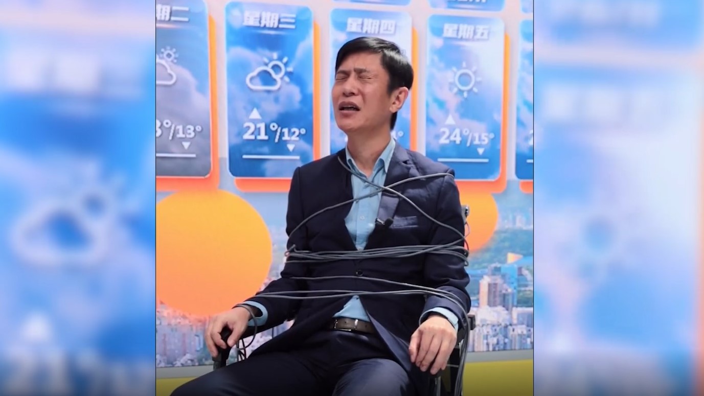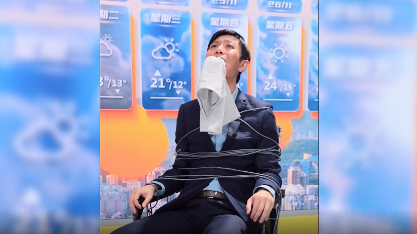 深圳氣象局日前發放的影片可見,主播被人五花大綁、口塞毛巾的綁在椅子上。在影片開頭,主播被質問:「冷空氣到哪去了」。旁人取走「堵」住嘴的毛巾後,主播回應表示:「真來,周一來,下周一早晨15(攝氏)度,出門穿個外套就行。」
