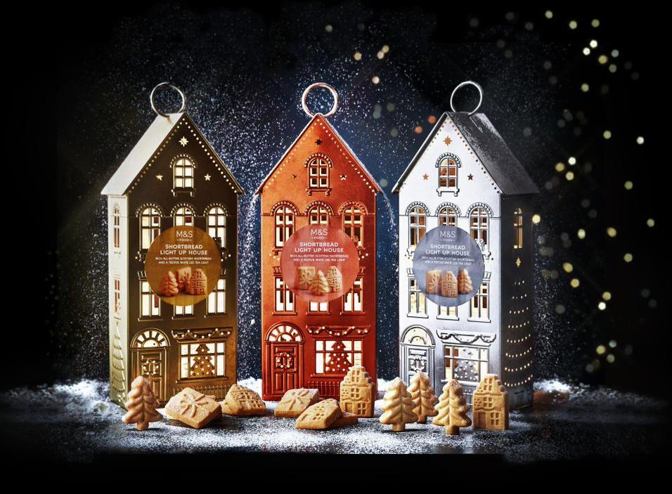另一適合送禮之選有「亮金色房屋造型蘇格蘭牛油香酥餅禮罐」,設有金、銀、銅三種顏色,每盒設有小夜燈。盒內的蘇格蘭牛油曲奇有聖誕樹、禮物盒、聖誕屋等可愛造型。