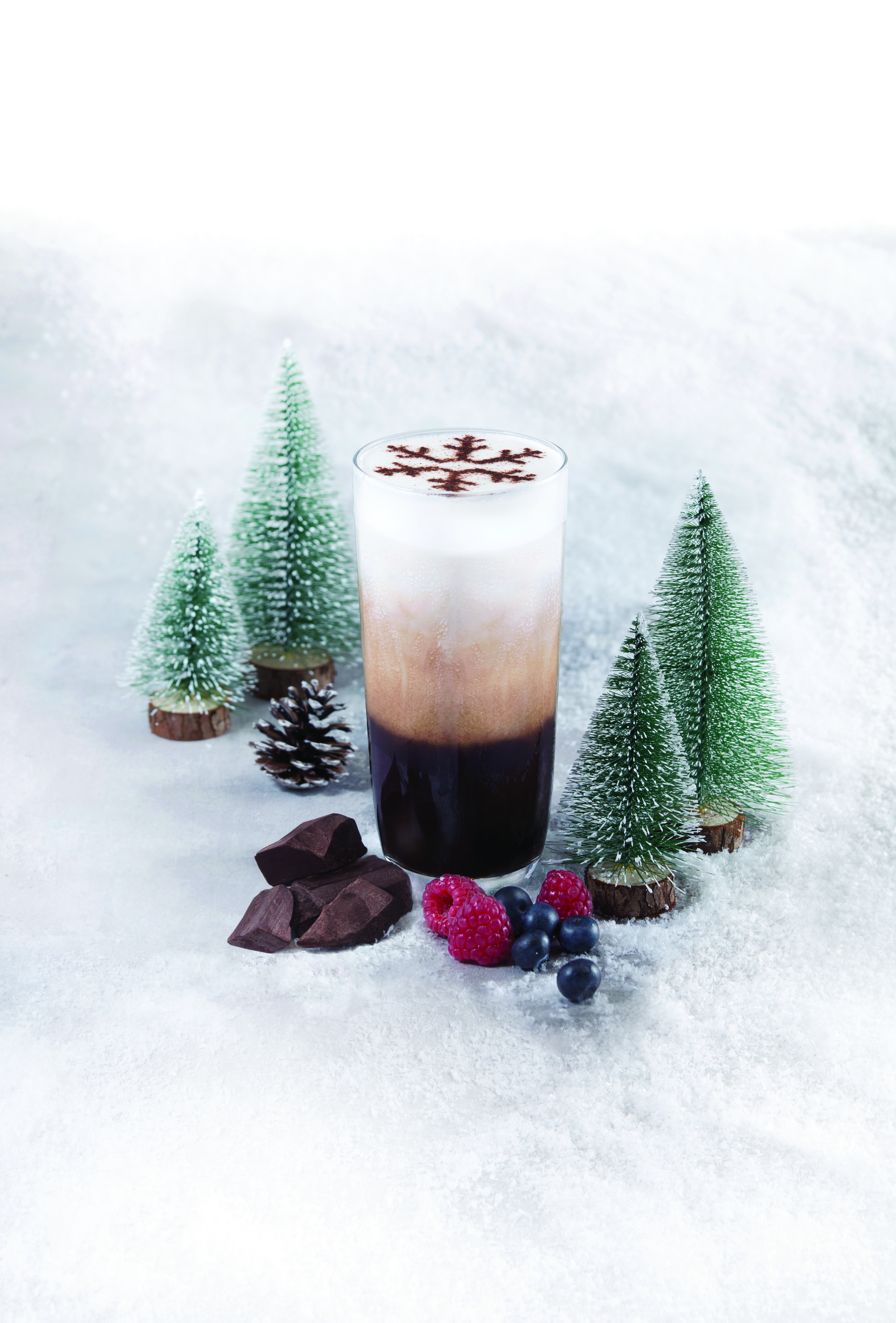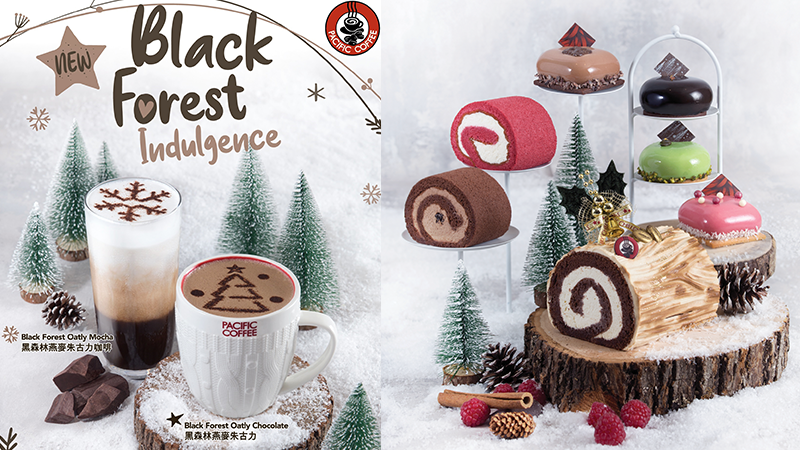 兩款聖誕限定特飲以經典黑森林蛋糕為靈感,選用質感輕盈的燕麥奶調製,不含乳糖成份。推廣期為2021年12月1日至2022年1月4日,設有冷熱款式。「黑森林燕麥朱古力咖啡」(標準裝$43;大杯裝$47;特大裝$51)以Pacific Coffee獨家18/25 Altura農地直送咖啡豆沖製,帶有紅桑莓的酸甜味。頂層特以朱古力粉末作為雪花造型,增添冬日感。