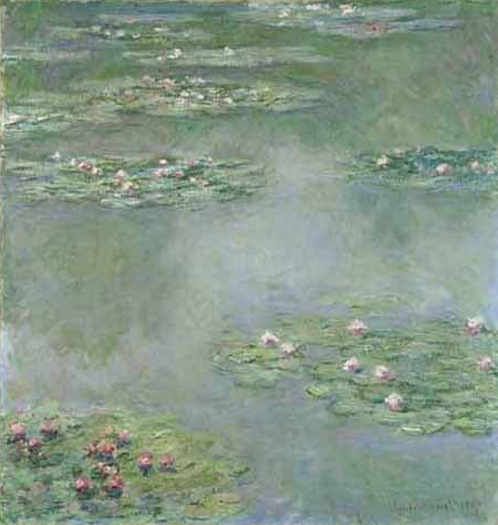 由於家門內便有種滿蓮花的大池塘,莫奈得以長時期觀察花卉的光影變化,豐富而富有層次的色調,造就出多幅印象派佳作。