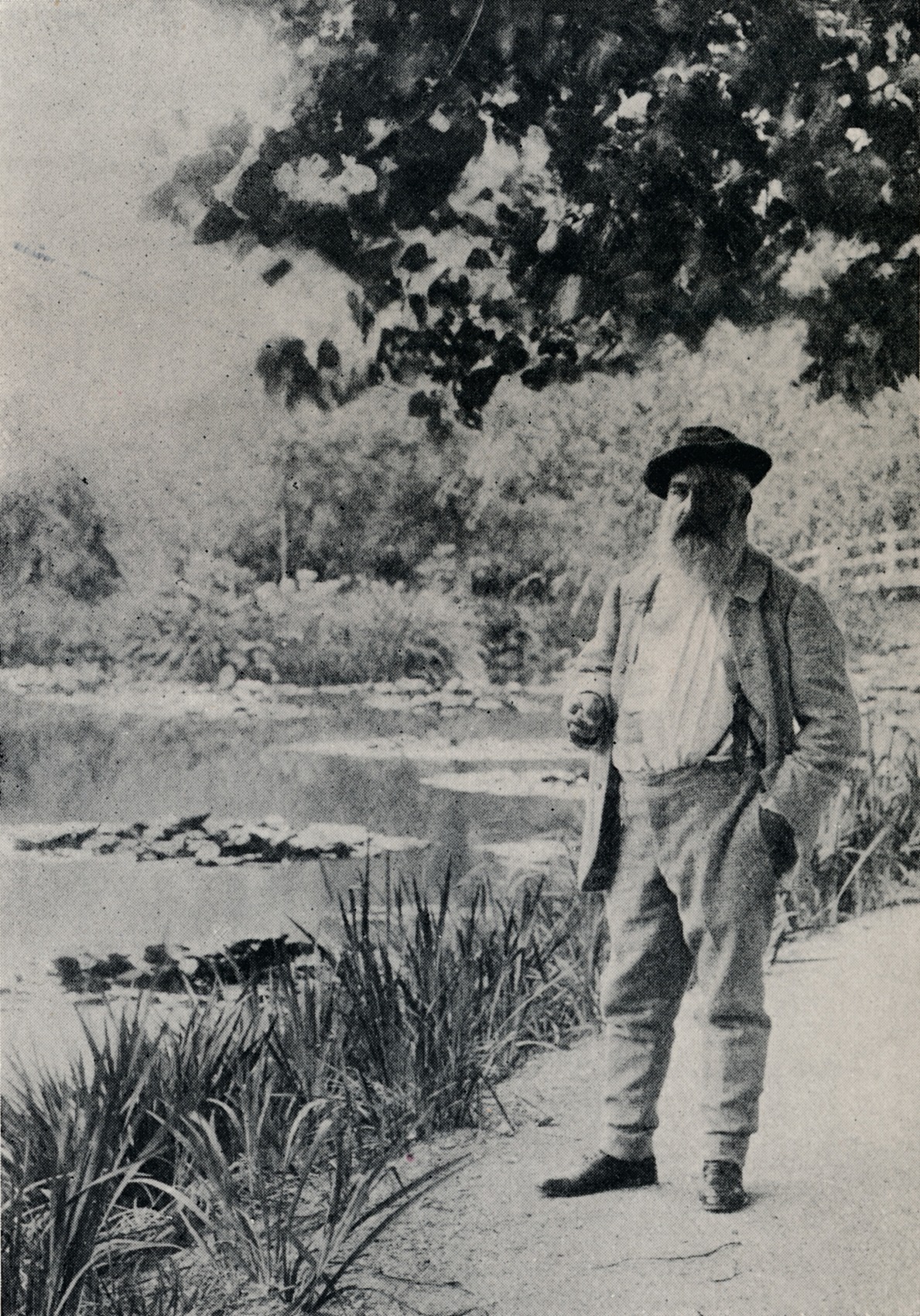 睡蓮是莫奈最鐘愛的繪畫題材,據統計超過250幅,包括1899年的《蓮池》及1905年的《睡蓮》等。1908年,讓・克勞德・尼古拉・弗赫斯蒂往吉維尼拜訪莫奈,其後在《農場與城堡》中詳細論述莫奈作畫的方法:「在這片生氣勃勃的青蔥草木間……圓圓的蓮葉在池中舒展開來,水面綴滿千萬朵紅色、粉色、黃色和白色蓮花……莫奈經常來到種滿鳶尾花的蓮池岸邊。他下筆迅速急促,為畫面鋪上明亮的顏料,又隨時間而穿梭於不同地方……天亮時他在畫一幅畫,午後又轉移到另一幅畫。早上他描繪蓮花盛放,晚上蓮瓣收起時他便專注於水面,觀察變化無常的倒影,鑽研在熟睡的蓮葉下顫抖的深湛池水。」