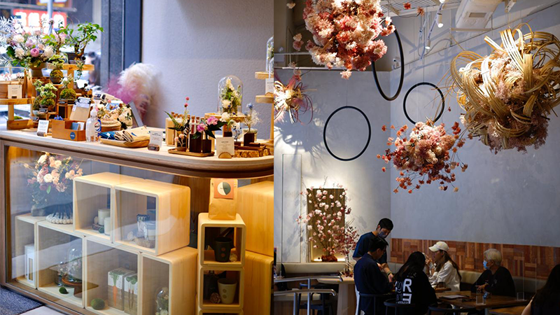 喜歡花藝及夢幻裝潢的咖啡迷可以考慮「Natura:」,將四季花卉融入室內設計之中,亦可選購多款品牌設計的保鮮花作品 (圖:橙新聞)
