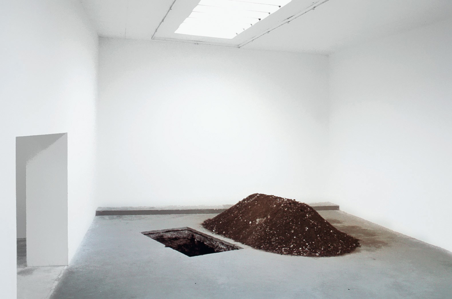 本次展出的作品部分取材自卡特蘭的生活和他作為藝術家的人生經歷,以死亡與人生無常為題,帶出藝術家自身面對死亡的沉思,作品包括:《否》(2021)以跪在地上、頭套紙袋的人,宣告人類對命運的一無所知;《無題》(1997)通過為卡特蘭量身定制的長方形土坑和一堆土,展現了被埋葬前的一刻;《母親》(2021)以牆繪的形式,再現了藝術家在1999年威尼斯雙年展首次展出的行為表演;對卡特蘭而言,又悶又倔的驢代表了抗拒藝術家身份的自己,而優雅強健的馬則是驢的死對頭,然而馬卻在作品《無題》(2007)中威風掃地,作為反英雄的戰利品,難堪地困在美術館的牆上。
