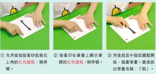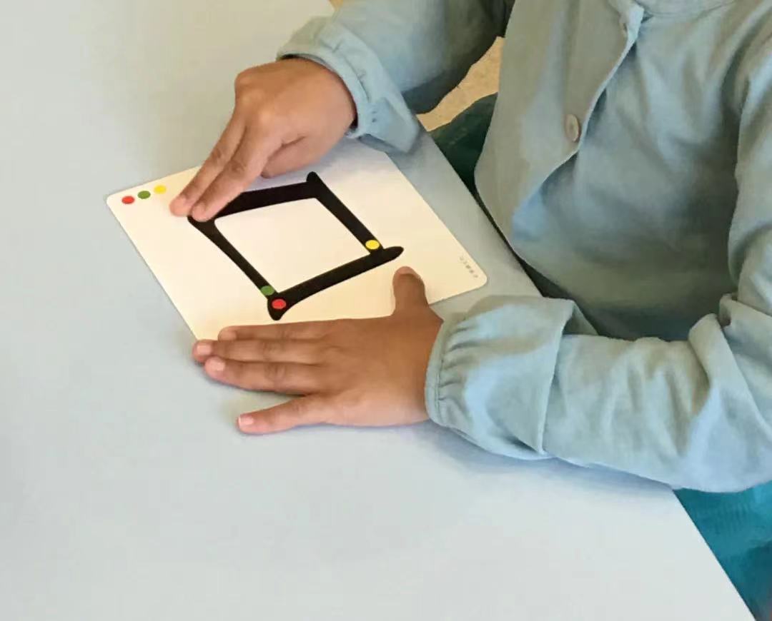 【橙訊】某天下午,小編到一位媽媽家中,探望她和約兩歲的孩子。她說:「有次跟女兒玩耍,隨手拿來一盒有磨砂觸感的字卡(那是《蒙特梭利漢字筆畫砂紙板》),想著與孩子玩玩這個,在摸摸畫畫之中學些生字也不錯。孩子望了望其中一張『口』字字卡,然後指一指我的口,我捉起她的小手,摸一摸卡上的磨砂筆畫,又指一指卡上的顏色點,沒有說一句話,女兒自己發現了相同顏色的圓點,自己動起手來,跟着寫。」
