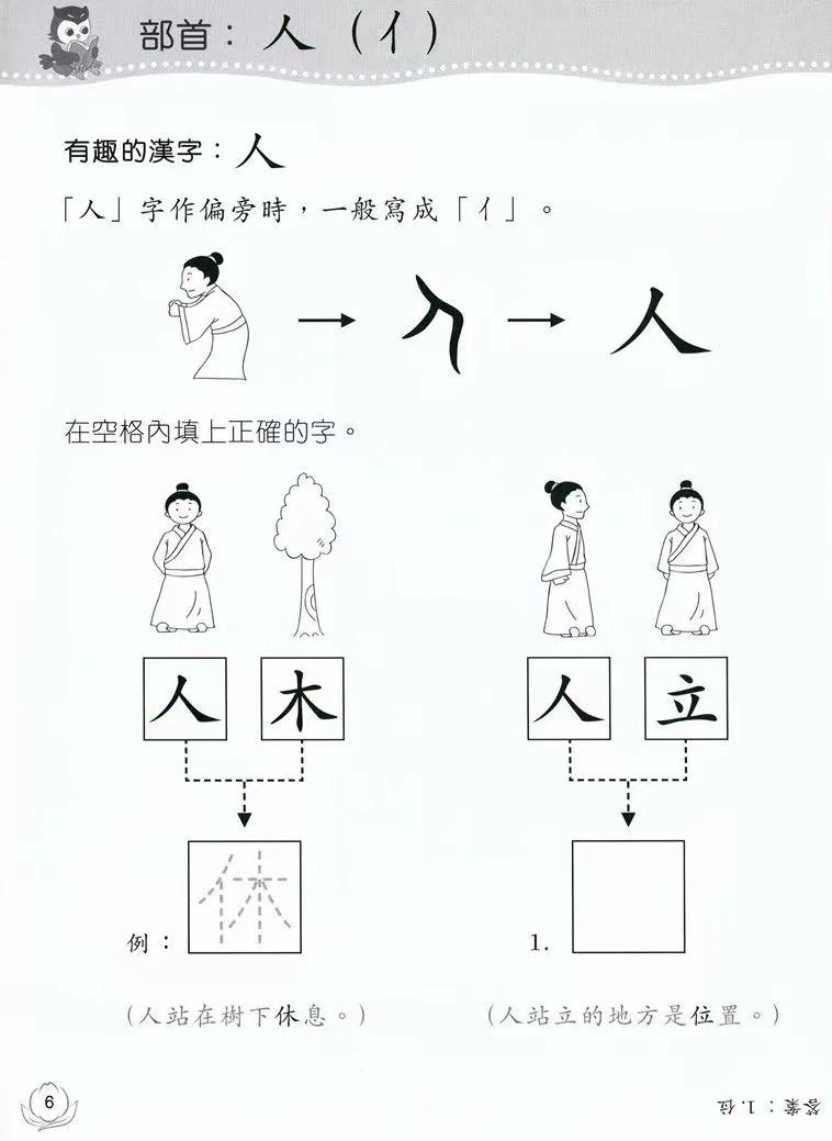 隨後的五至十二冊,更是把漢字的特色發揮出來。漢字本身是象形文字,教孩子寫字時,結合了圖像,例如水,就像水流動的樣子;目就像人的一對眼睛。把漢字化成一個個小故事或圖畫,讓文字變有趣,就能讓孩子學習書寫的同時,認識漢字的根源和文化,一套書擔當了語言教育的功能,兼具文化的傳承和修養。