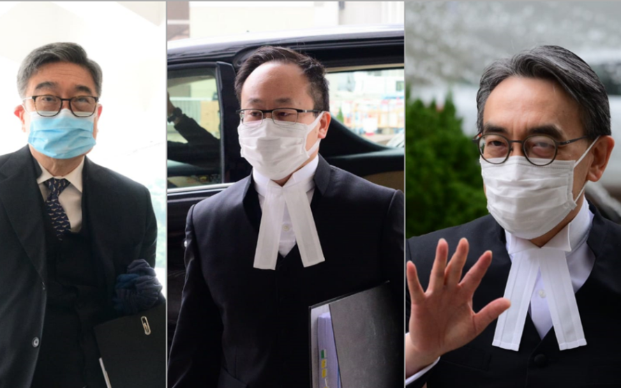 霍家爭產案再次押後,據了解各方正就和議協議作討論。圖為各方大律師︰王則左、孫靖乾、翟紹唐。(左起)