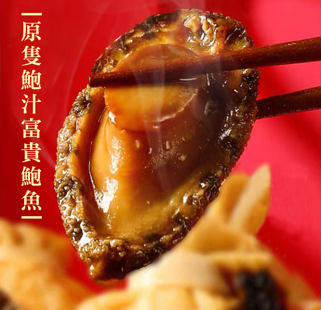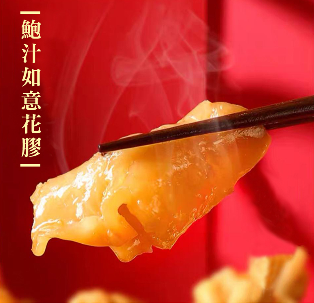 「鮑汁富貴鮑魚」主打足料大隻及厚肉結實的口感;「鮑汁如意花膠」中的秘製鮑汁經過多重功序烹調,花膠主打肥厚彈牙,更有養顏效果;「北海道乾瑤柱」中的北海道帆立貝以天然方法養殖,主打圓大飽滿及肉質柔軟的口感;「日本金蠔豉」主打清甜味道,不帶油膩感。