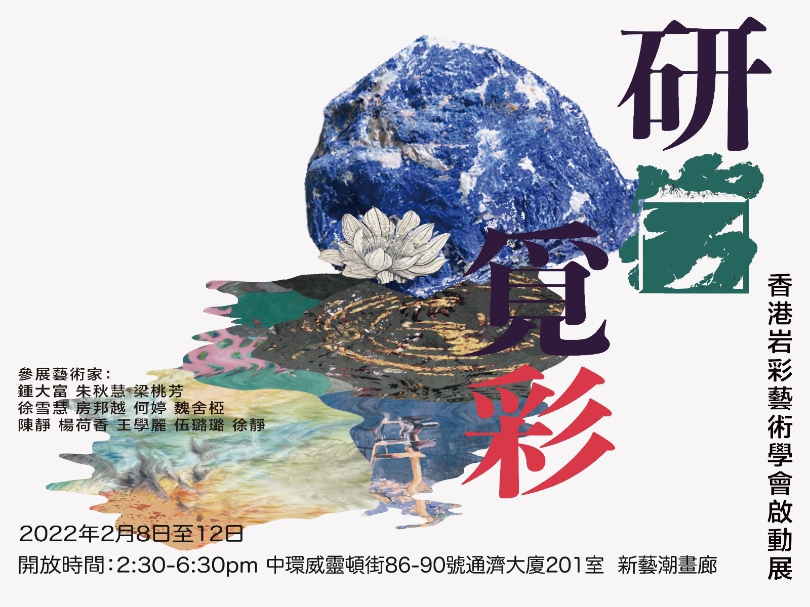 《研岩覓彩》是香港岩彩藝術學會首個展覽,匯集本港及內地十二位藝術家,包括會長鍾大富、副會長朱秋慧,以及其他藝術家包括王學麗、伍璐璐、何婷、房邦越、徐雪慧、徐靜、梁桃芳、陳靜、楊荷香及魏舍椏。他們以岩彩作為媒介,創作出各具特色的作品,把岩彩藝術的美麗表現無遺。