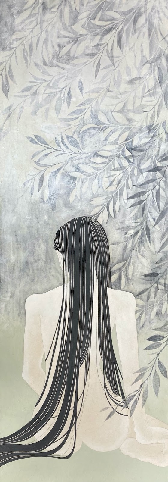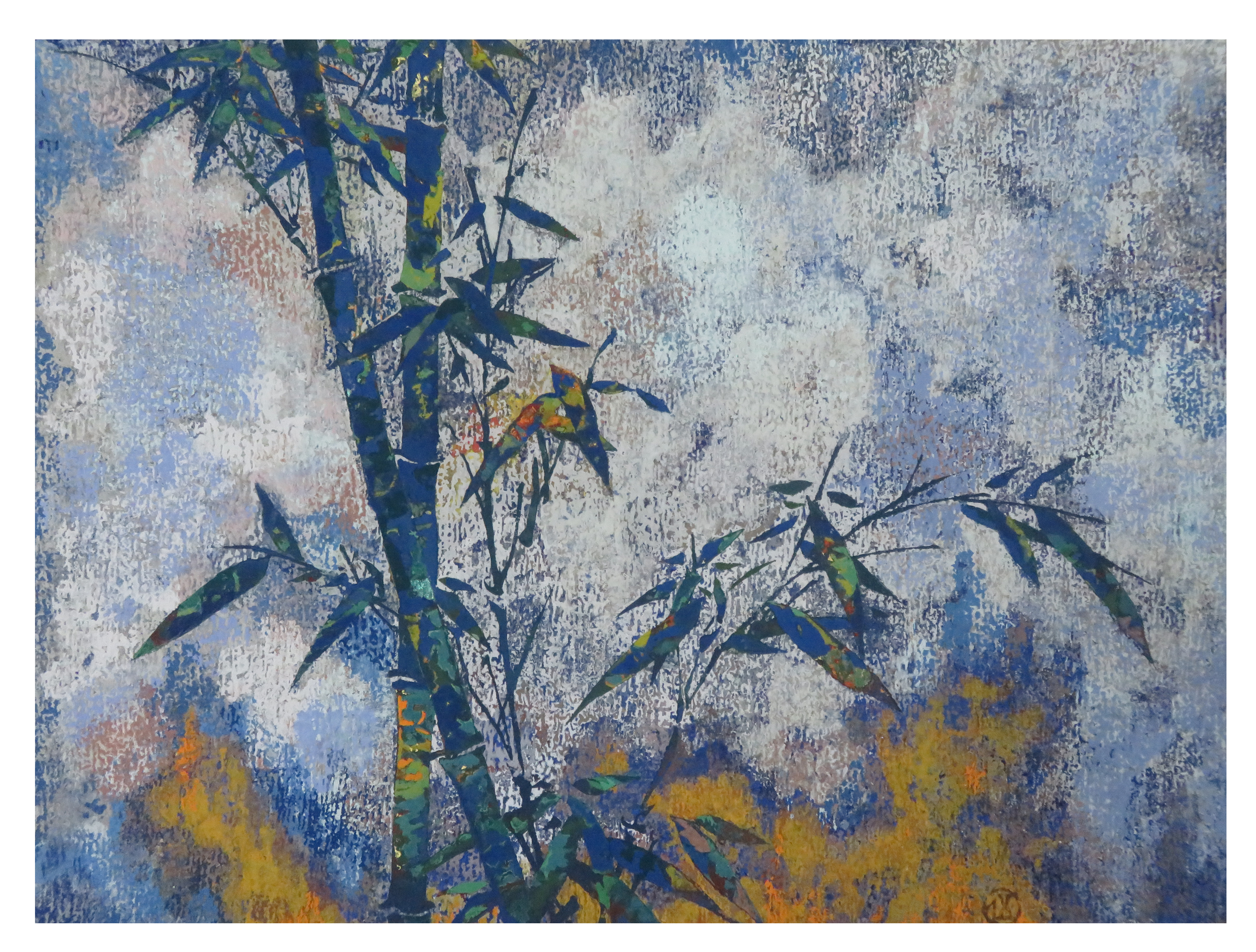 伍璐璐,竹 I,,岩彩、金屬箔、水彩畫紙,57 x 76 cm,2019