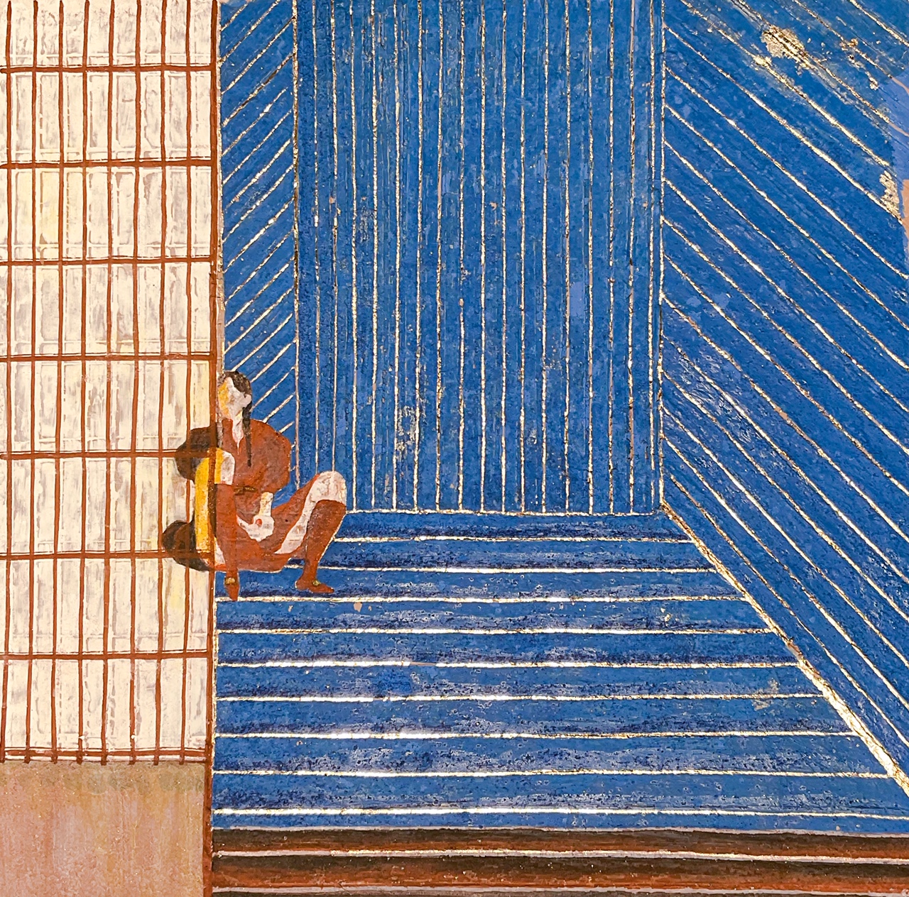 房邦越,葉落悠悠,岩彩、混合媒介、皮紙,40 x 120cm,2021