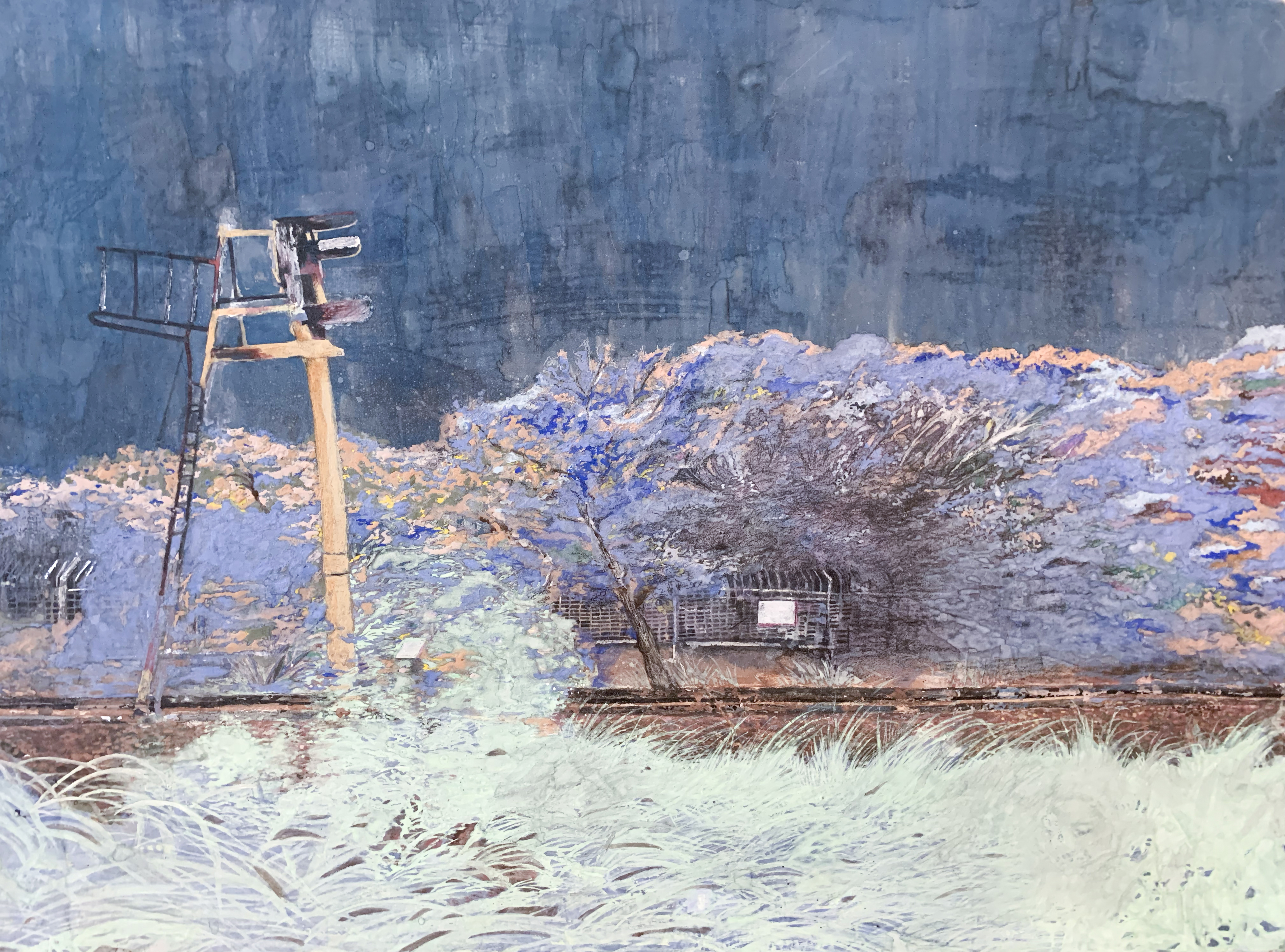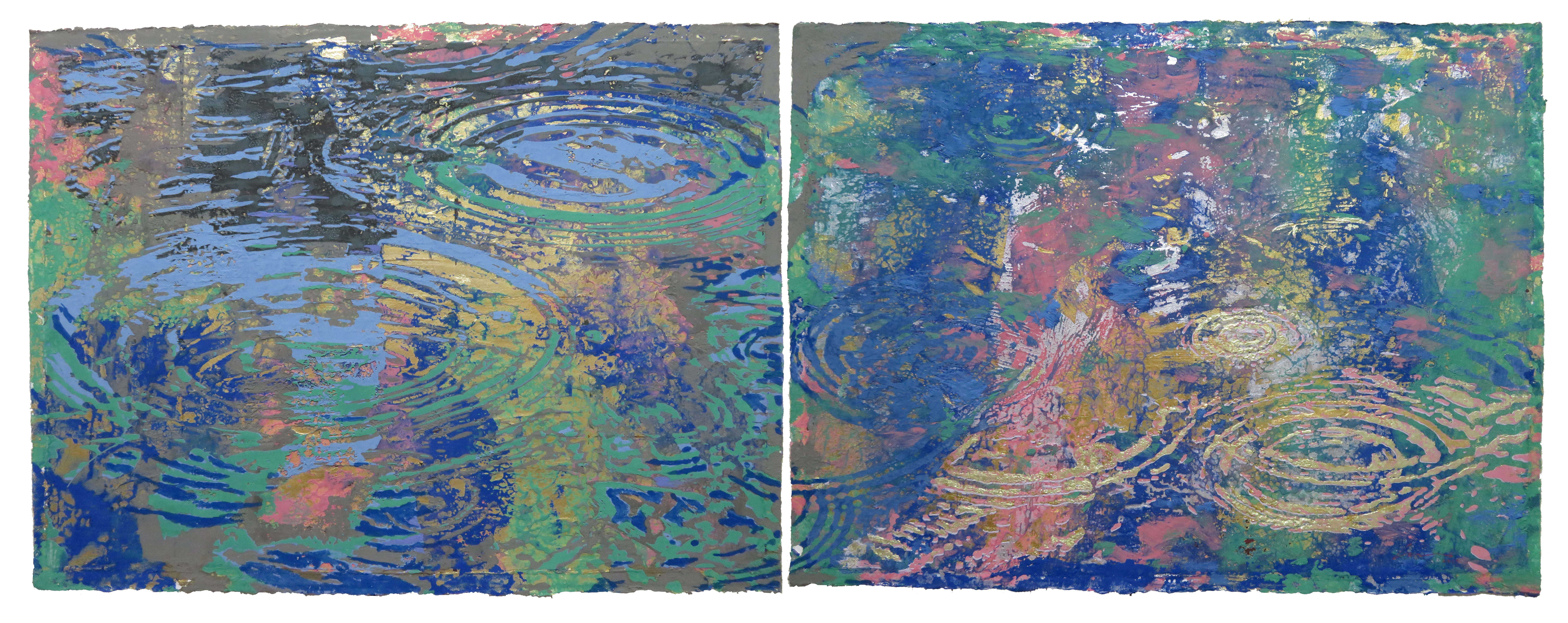 鍾大富,驟雨中的顏色,岩彩紙本,57 x 152 cm,2017