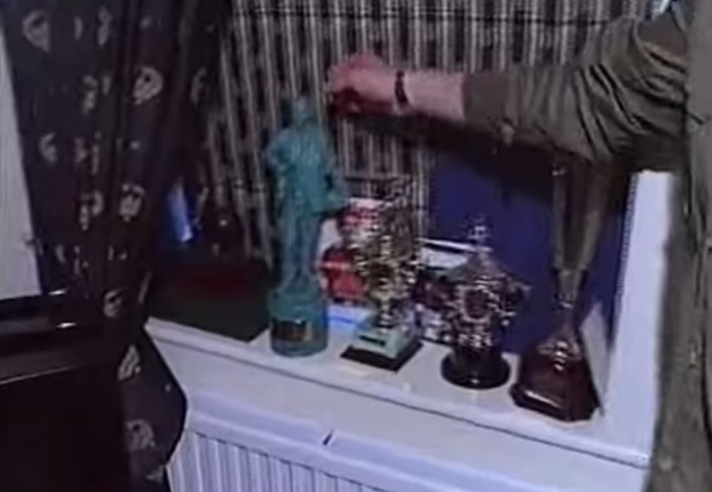 接着碧咸又帶攝製隊上樓上,主持問牆上的一個大凹洞是如何形成的。碧咸亦不怕被人訕笑,坦言說,「有一次我穿着曼聯的服飾和拿着很多東西,需要遠遊到客場作賽,結果我在樓梯上滑倒了,膝蓋撞到牆上。」