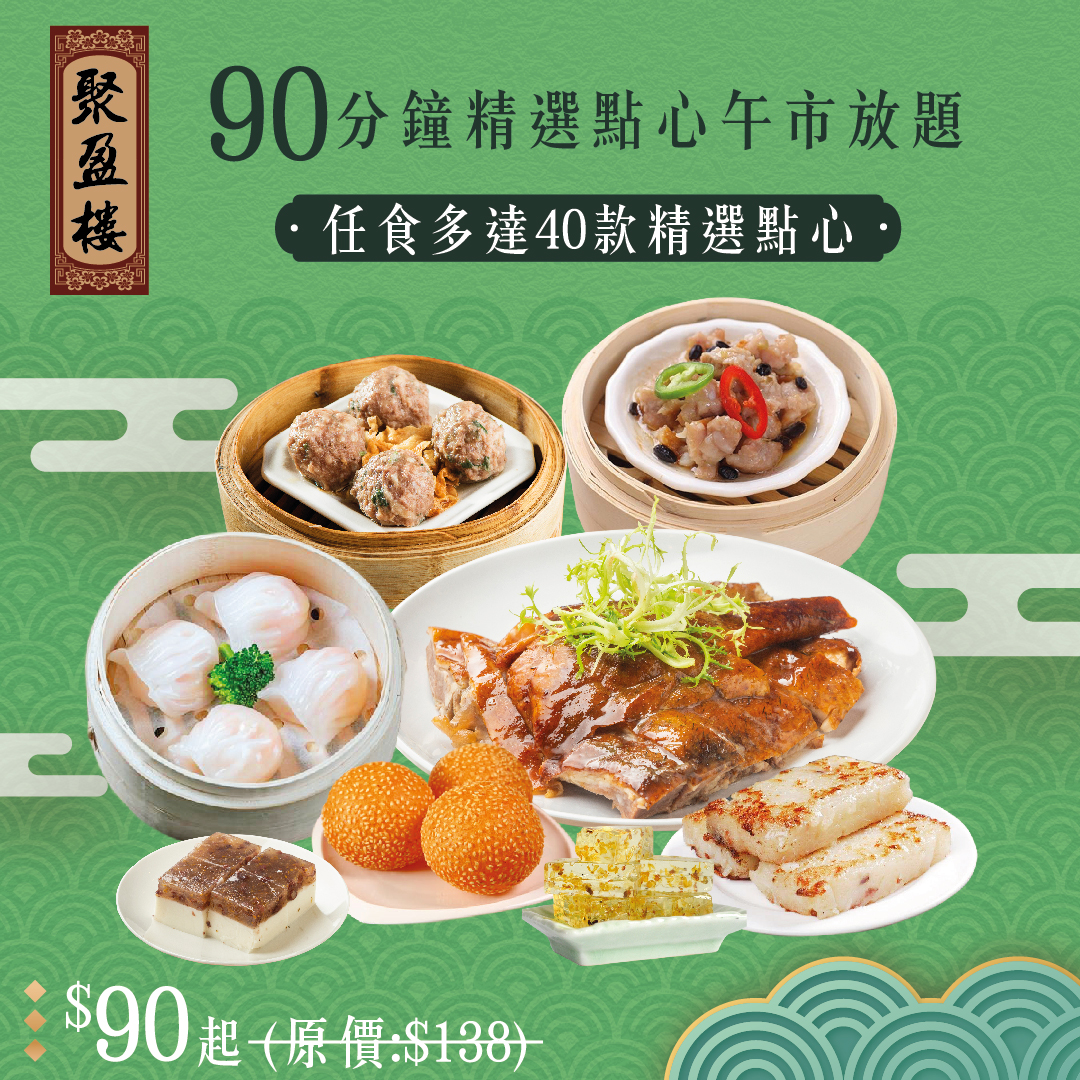 【橙訊】銅鑼灣智選假日酒店旗下的粵菜食府「聚盈樓」,主打傳統、冷門及熱門點心及甜點,現時推出期間限定90分鐘懷舊點心午市放題,讓大家可以懷緬80年代的正宗點心味道。網上預訂價為每位低至$90,即可享受超過40款的點心放題,星期一至日均適用。