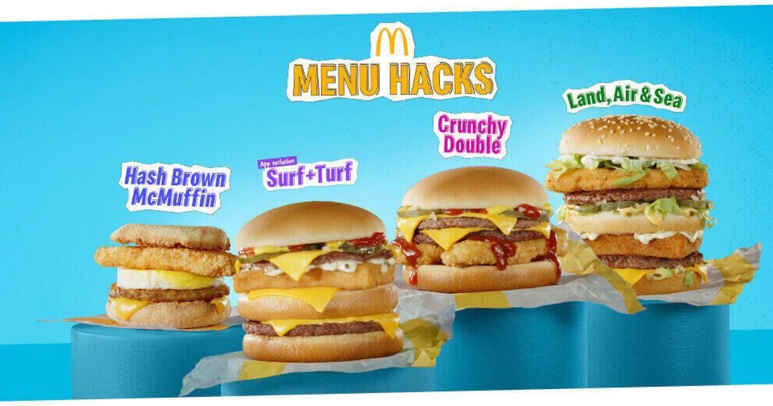 近日美國麥當勞推出四款靈感來自TikTok的「Menu Hacks」創意組合漢堡,大家選購後會得到相應的食材,透過DIY親自搭配漢堡。款式分別有:「Hash Brown McMuffin®」、「Surf + Turf」、「Land, Air and Sea」及「Crunchy Double」。