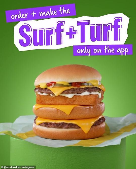 「Surf + Turf」以麥當勞的雙層芝士漢堡搭配麥樂雞及BBQ燒烤醬而成,靈感來自創作者Greg Simms,他認為這是一個簡單但相當美味的組合。