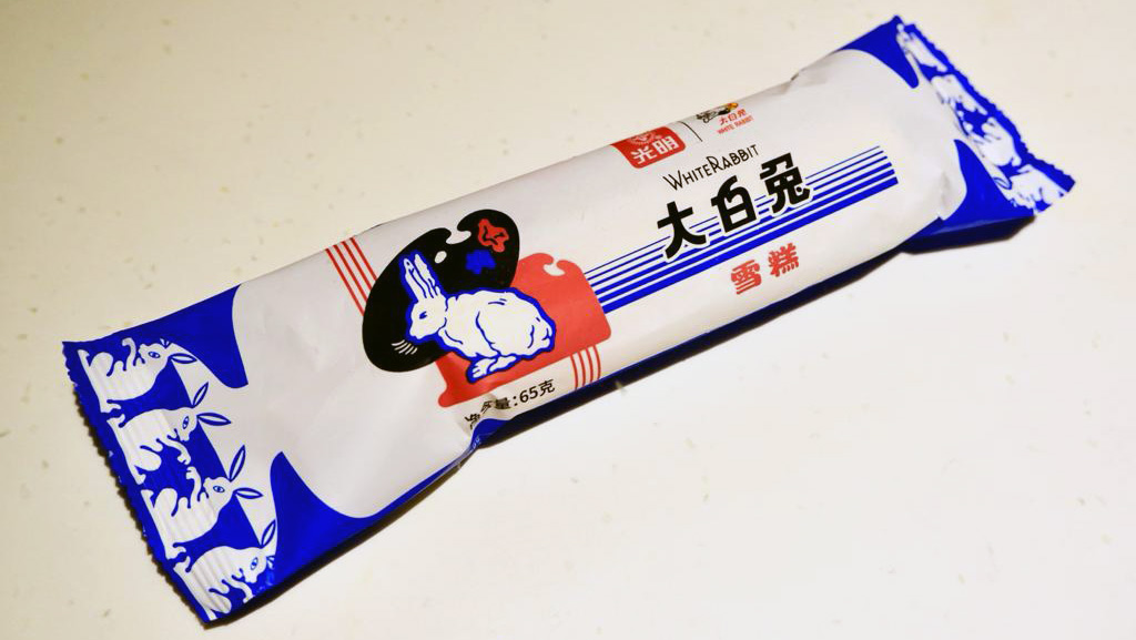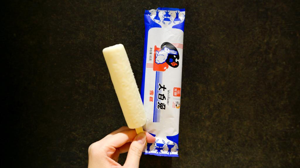 首先介紹大家都期待已久的「大白兔牛奶雪條」,近年坊間出現不少白兔糖口味雪糕,雪條則較為罕見。而此款雪條包裝選用了大白兔牛奶糖傳統的紅白藍配色,配上標誌性的大白兔圖案,彷彿是經過巨大化的牛奶糖。雪條呈圓柱形狀及奶白色,如果不特別說明是大白兔牛奶糖味,入口其實與牛奶味雪條無異,小編認為沒有驚艷的感覺。大家都知道大白兔牛奶糖另一重點是包括糖身的糯米紙,雪條並沒有特別加入這元素或加入其他配料增加口感,令人有點失望。抵讚之處是雪條甜度不會過高,吃完一整條不會過膩,罪惡感也不大。