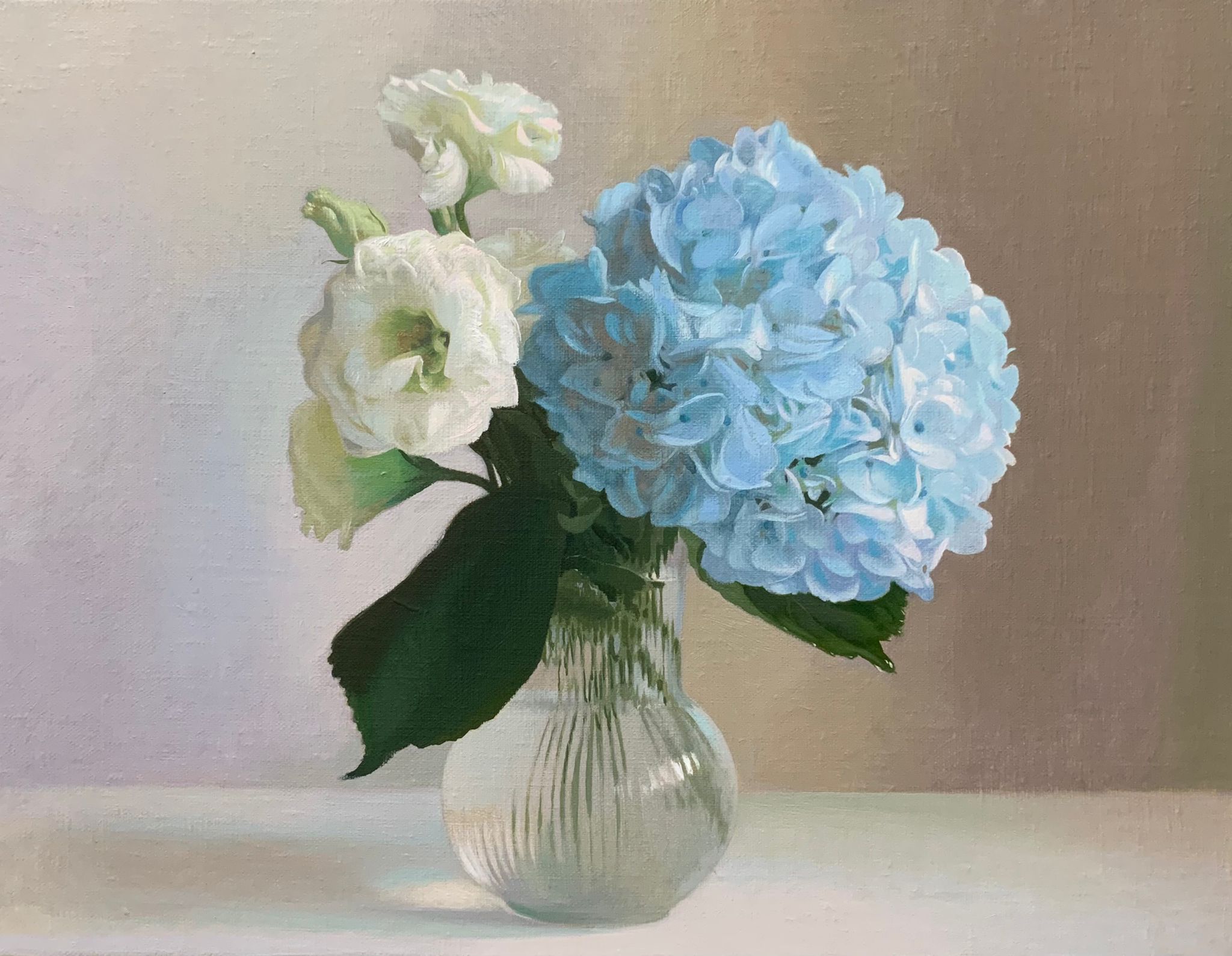 這次展出的系列作品以花卉為主題,是胡浚諺近三年來主力繪畫的題材。他畫的並非在大自然中的花卉,而是置放於花瓶中作為家居點綴的花束。胡浚諺認為,即使是這些作為裝飾品的花卉也是一種生命體,也在無聲地經歷生命的變化,其各種生命形態有獨特的吸引力,故他以寫實的筆觸將包括鬱金香、玫瑰、繡球花、百合花等花卉在不同階段、不同時間和不同光源下的狀態記錄,透過層次和細節的精妙處理,呈現出它們生命的痕跡。
