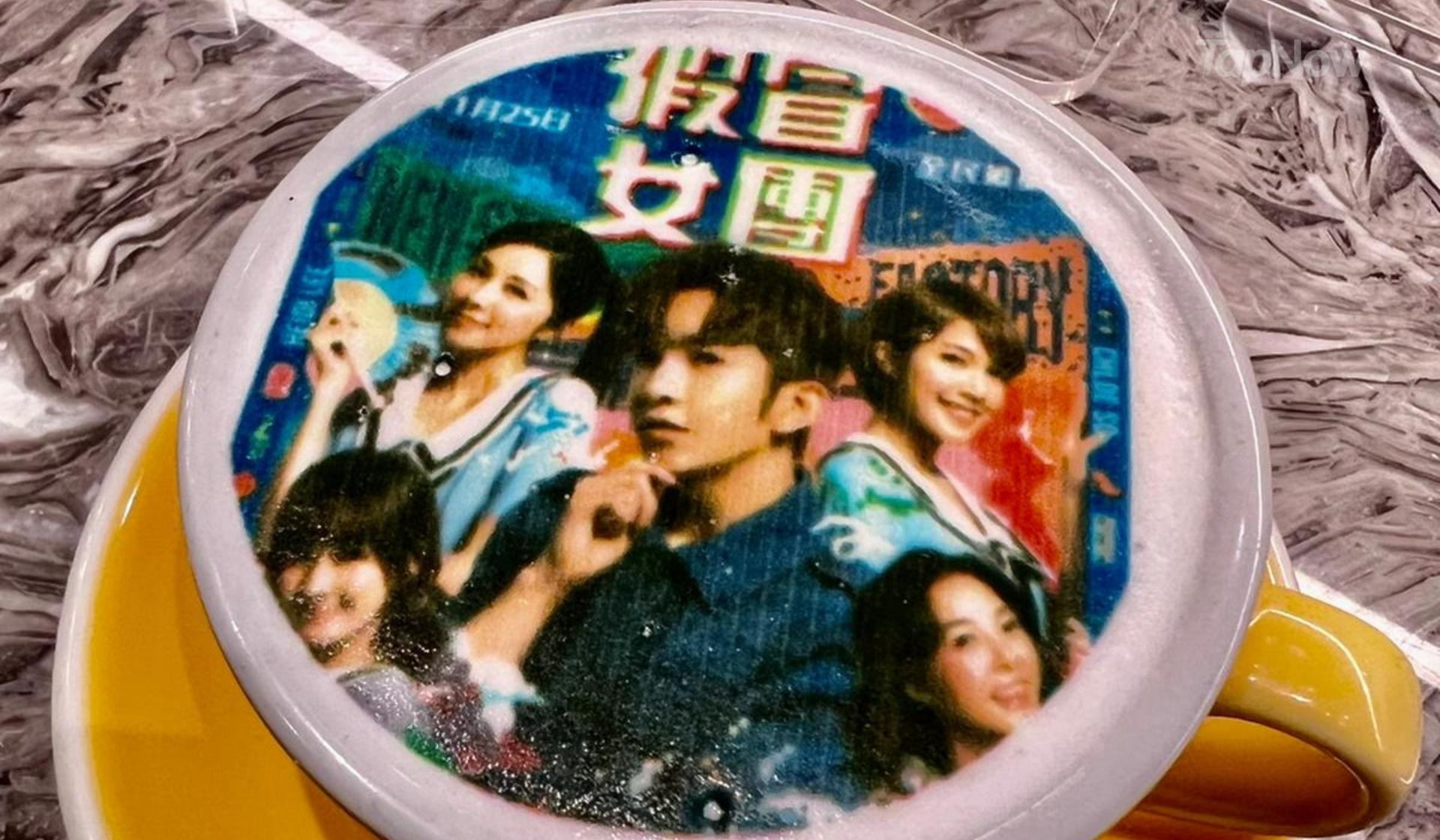 飲品方面,推介大家可以加購藝術打印咖啡,當中可以自選或自攜電子相片交予餐廳進行打印製作,更可選擇期間限定的教主Anson Lo於電影《假冒女團》海報咖啡,望着教主齊齊享受優閒時光,同時為教主進行應援。