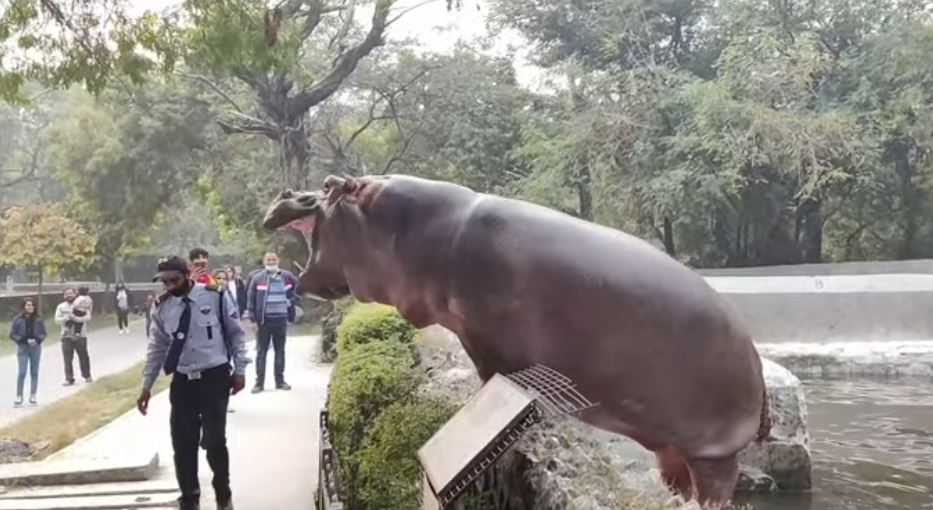 據印度傳媒報道,事件發生在印度新德里動物園。至於為何天生我行我素的河馬會聽保安的話,乖乖退回水中,暫時未知原因;傳媒估計動物園一向以拍打的方式,警告動物退後,再作獎勵。然而最值得關注的是,河馬體型巨大,為何動物園未有為河馬園區豎立較高的圍欄,防止他逃逸。