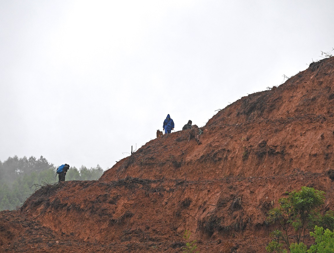 東航空難.有片|搜索人員發現飛機引擎構件 有家屬在附近山坡布置祭奠平台