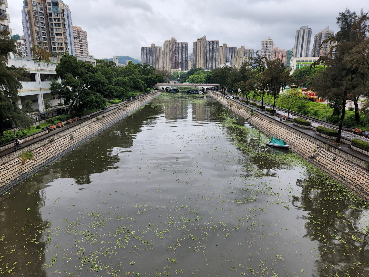 【橙訊】大埔林村河竟然變成草地?不少街坊發現,近日太和橋底的河面出現罕見奇景,變成「綠草如茵」似足足球場!原來水面鋪滿了大量水浮蓮,令船隻猶如停泊了在「草皮」上般,好不壯觀。