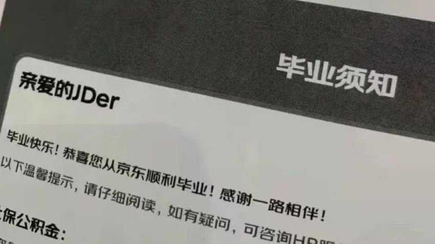 值得留意的是,網上同時流出嗶哩嗶哩和京東的裁員信,嗶哩嗶哩將被裁員工離職日,美化為「bilibili畢業日」;京東同樣形容為「畢業須知」,並在開頭寫道「畢業快樂!恭喜您從京東順利畢業!感謝一路相伴! 」
