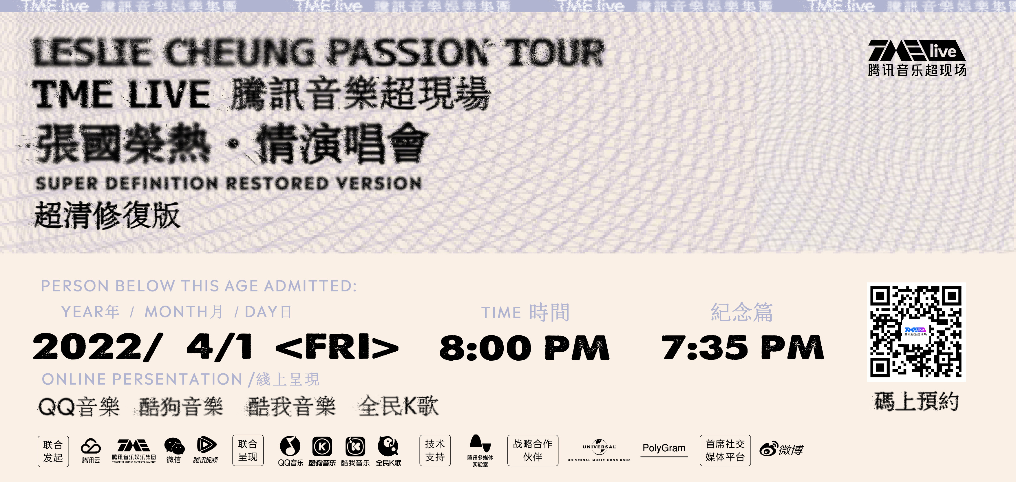想要預約觀看這場演唱會,可點擊此處查詢,值得一提的是,本次修復版雖為免費播映,但不支持回放,哥哥的粉絲一定記得守好時間觀看呀。