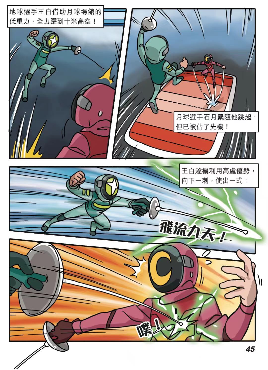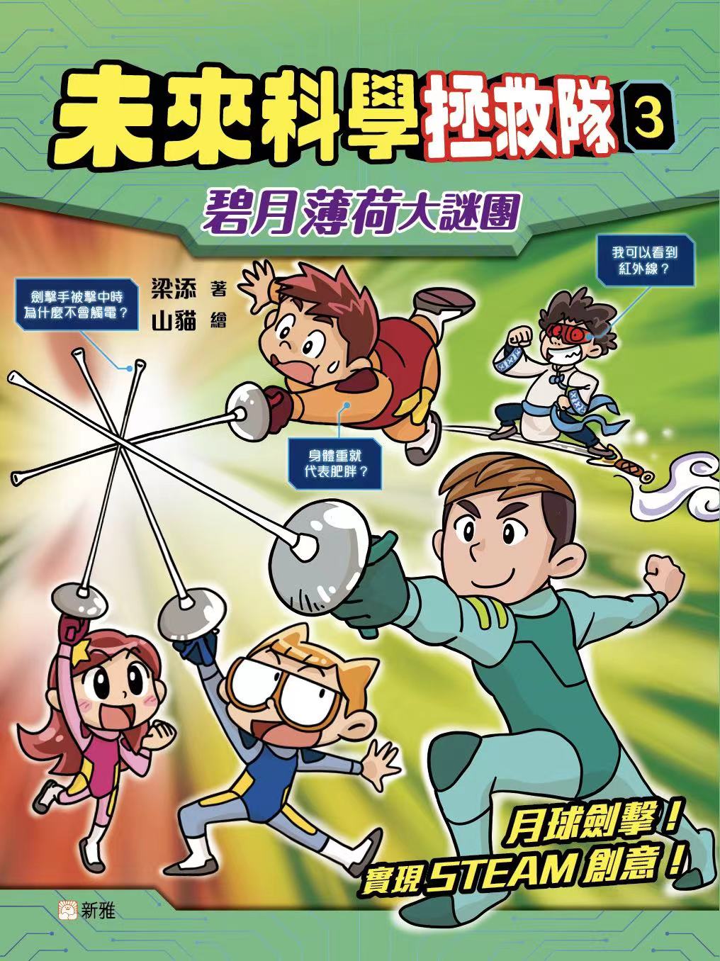 那麼,劍擊跟科幻故事又有甚麼關係呢?兒童科幻故事系列《未來科學拯救隊》的作者梁添,正正被劍擊運動員的精神感動和啟發,在最新著作《碧月薄荷大謎團》中,加入大量精彩的劍擊情節,他在故事中既預測了劍擊的未來發展,亦分別以科普、科創、科幻三方面,向小讀者講解劍擊的種種知識。