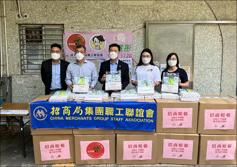 此外,早前招商局集團聯誼會還組織義工向沙田博康邨居民派送了近300份關愛防疫包。