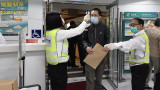薜永恒與流動登記隊成員交談,了解協助市民登記的工作。