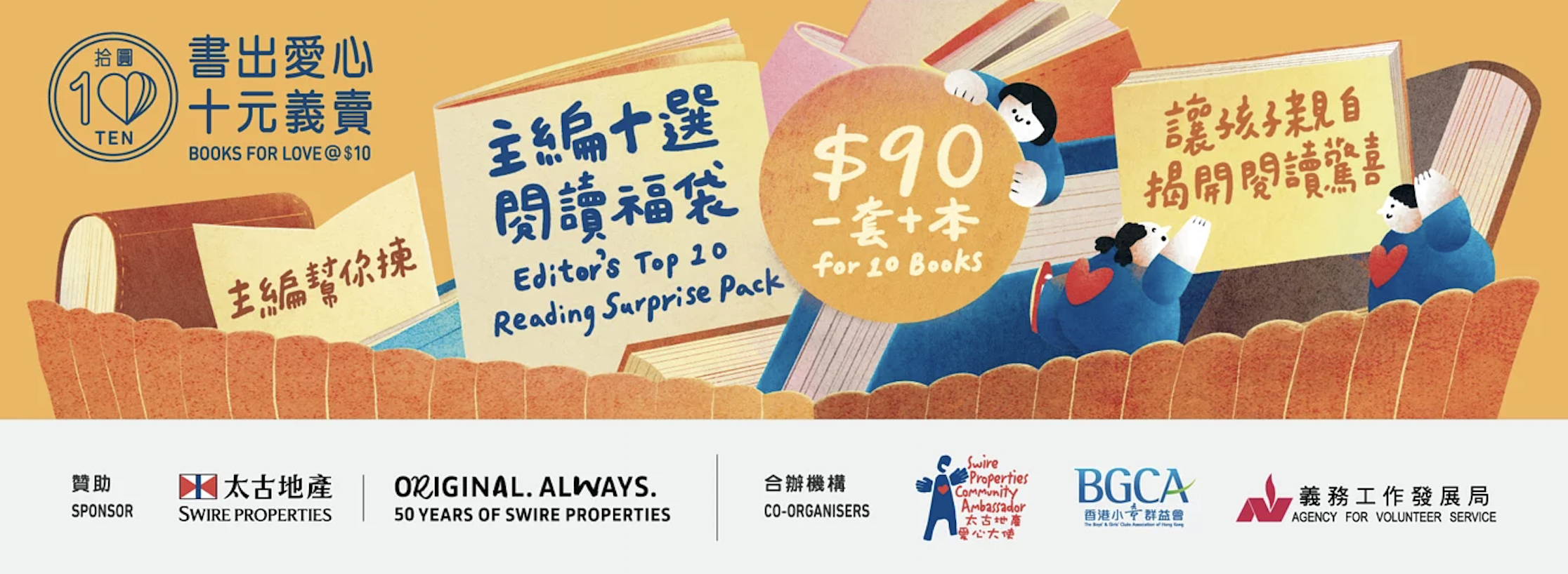 「書出愛心 十元義賣」實體義賣將預定在今年6月25日至7月3日在太古坊舉行。活動同時邀請了10位插畫家,在Facebook和Instagram上以好書金句創作勵志插圖,邀請書迷培養積極正面的生活態度,推廣閱讀文化。更多詳情可前往「Books for Love」Facebook專頁或Instagram瀏覽。