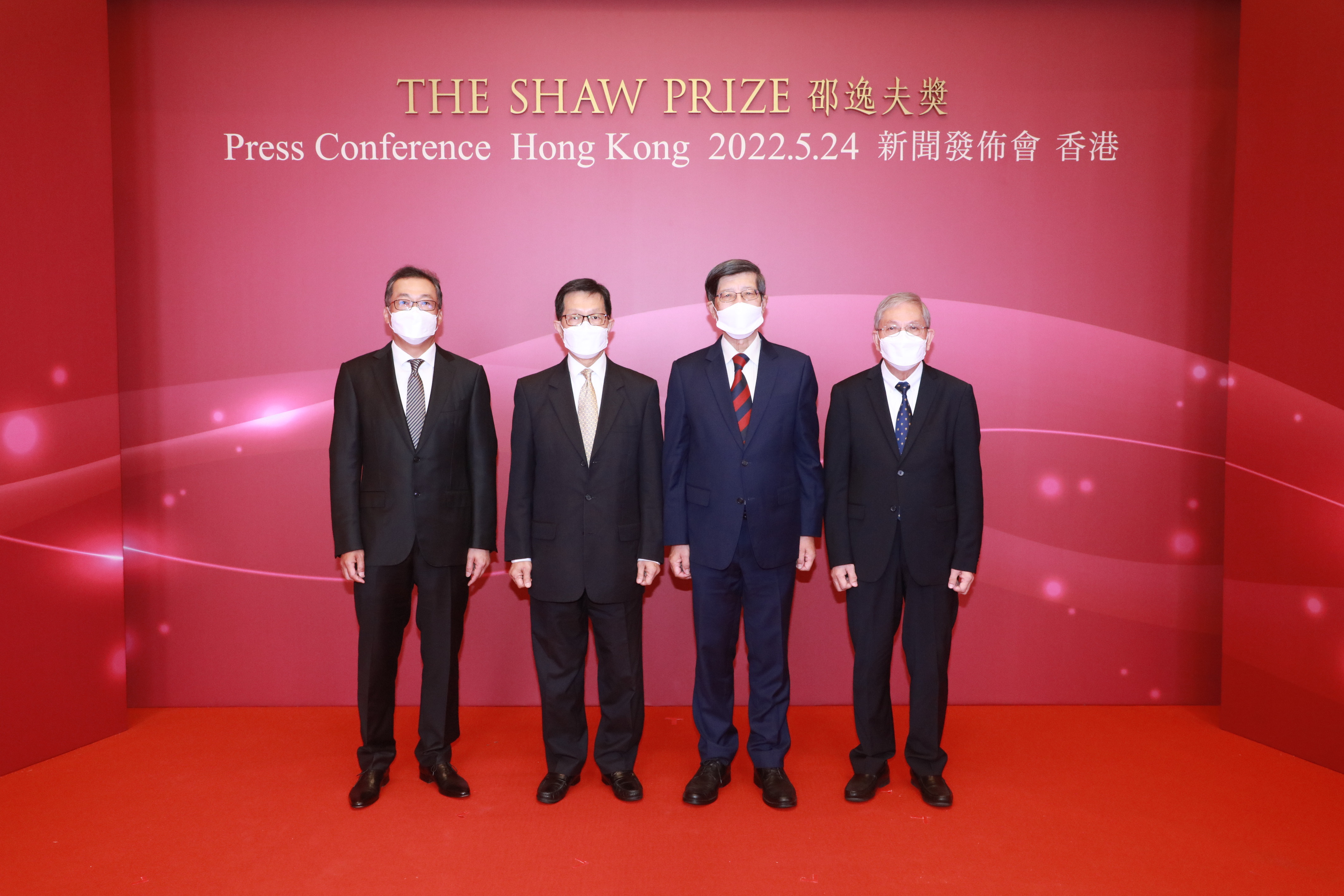 (由左至右)邵逸夫獎基金會董事局主席陳偉文、理事會理事程伯中、理事會主席楊綱凱教授與理事會理事陳偉儀於2022年新聞發布會上合照