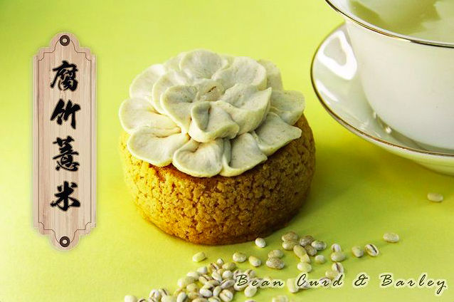 「腐竹薏米泡芙」以原味菠蘿皮泡芙包裹腐竹吉士、冰糖薏米及日本黃豆香緹忌廉,主打清甜感。