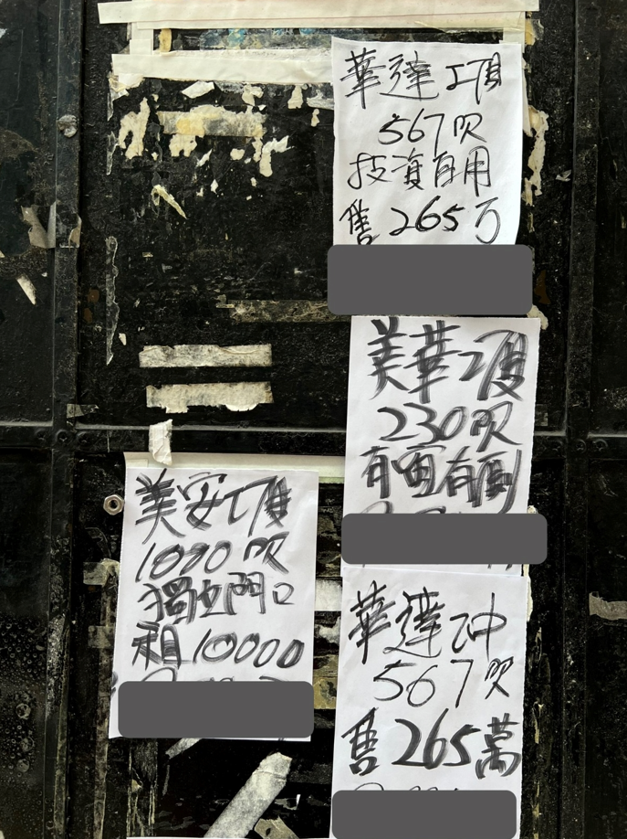 在大型住宅林立的社區,我們偶爾會看到貼在巴士站旁的手寫招租廣告,通常這些單位的面積不會很大,業主為省卻經紀佣金,便親手寫下街招。若走到舊區或小區裡,這類街招會更多,甚至當區的地産小店也會用上手寫字作租務與買賣廣告。工業區的手寫招租廣告,尤其是工廈小型工作室的招租與投資買賣更是隨處可見。這類型的手寫廣告,給予我們哪些重要的訊息呢?