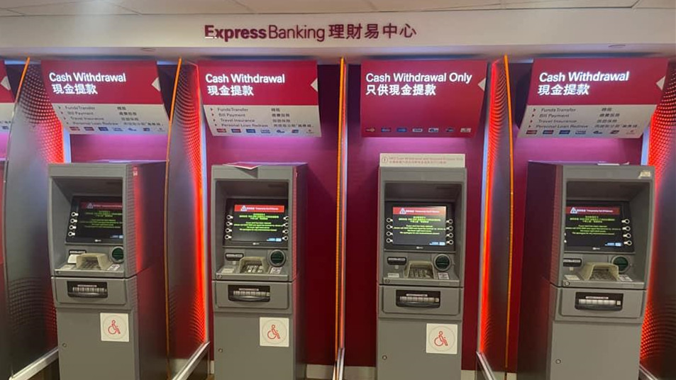 滙豐銀行理財中心多部櫃員機暫停服務。
