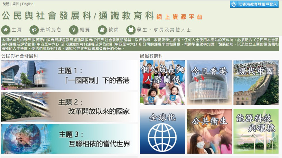 圖︰公社科/通識科網上資源平台網頁、教育局