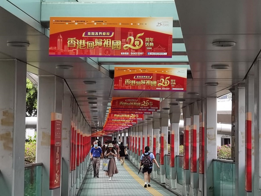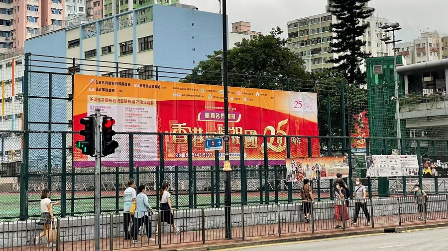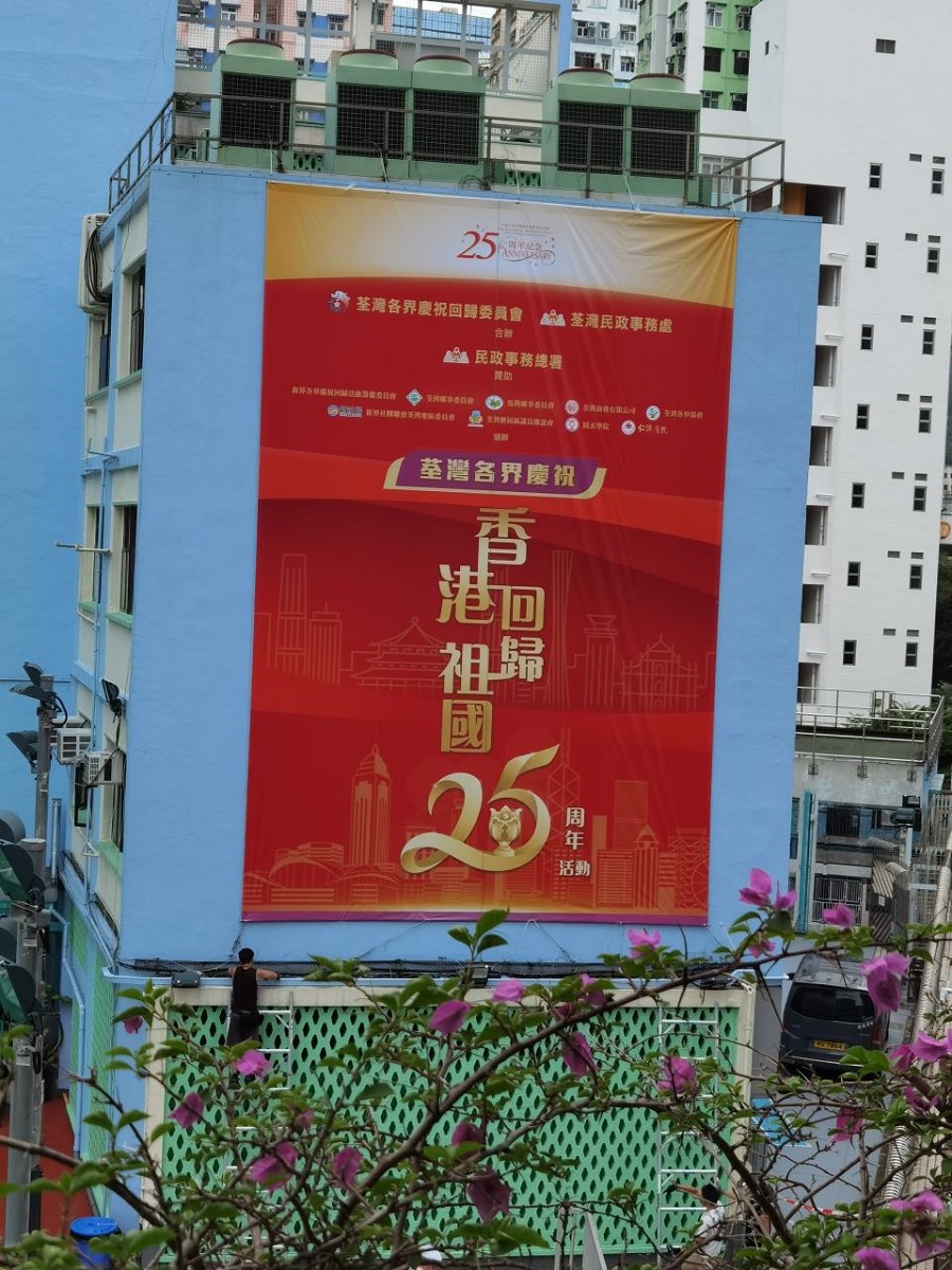 荃灣街頭已掛滿慶祝香港回歸25周年的巨型宣傳品。