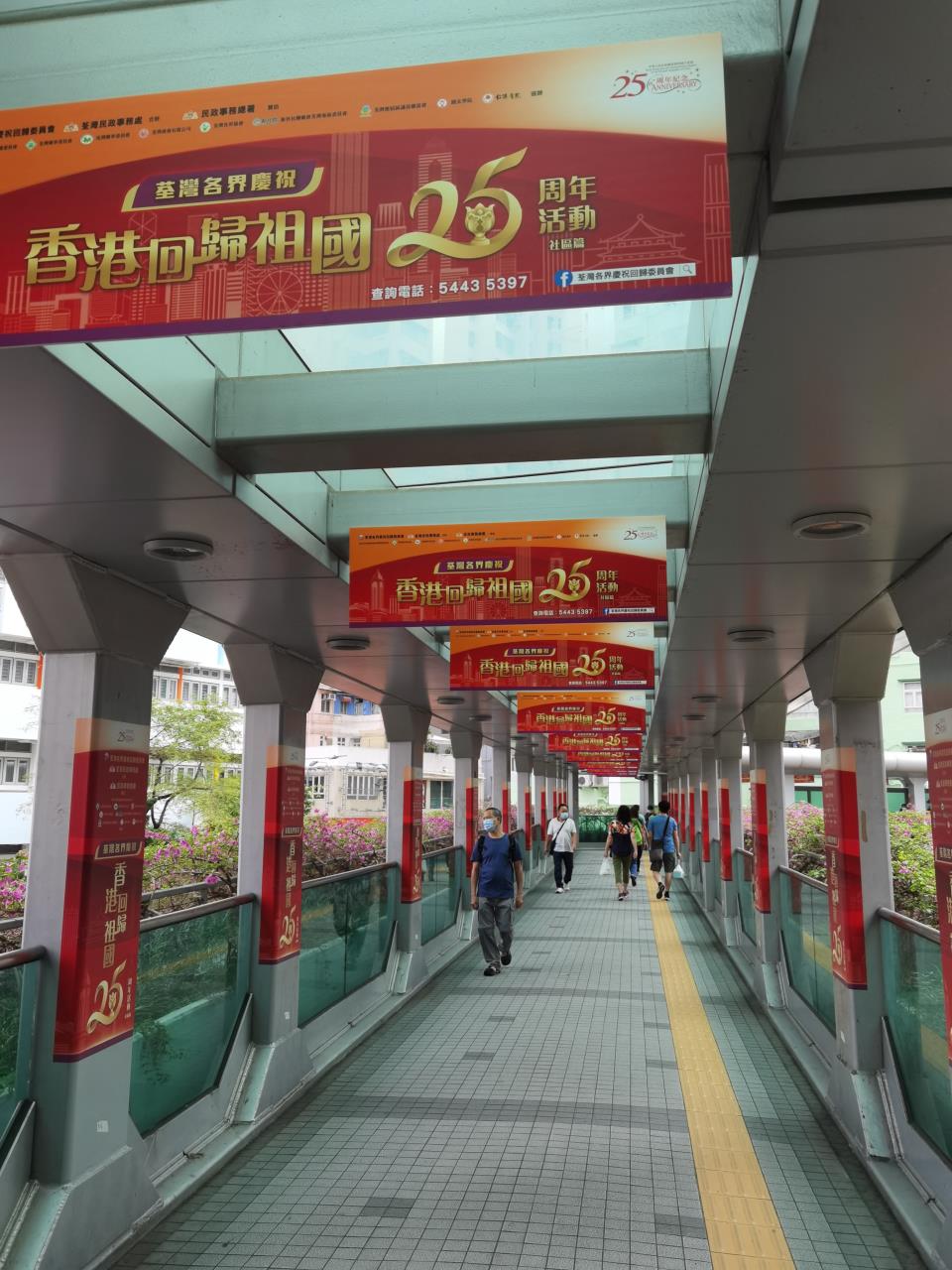 【橙訊】今年是香港回歸25周年,「荃灣各界慶祝回歸委員會」特別策劃在當區掛上多款「荃灣各界慶祝回歸祖國25周年」的宣傳品,從港鐵站到街市,從新天橋網絡到海濱長廊,處處洋溢著節日的氣氛。