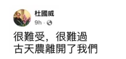 【橙訊】前中英劇團藝術總監、資深舞台劇演員及導演古天農前日離世,終年69歲。據悉古天農當天曾向家人表示有點不舒服,最終在睡夢中離世。昨日,其死訊由著名編劇杜國威在網上公布,他表示「很難受,很難過。古天農離開了我們。」該消息隨即震驚業界,與古天農合作過的台前幕後都深感難過。