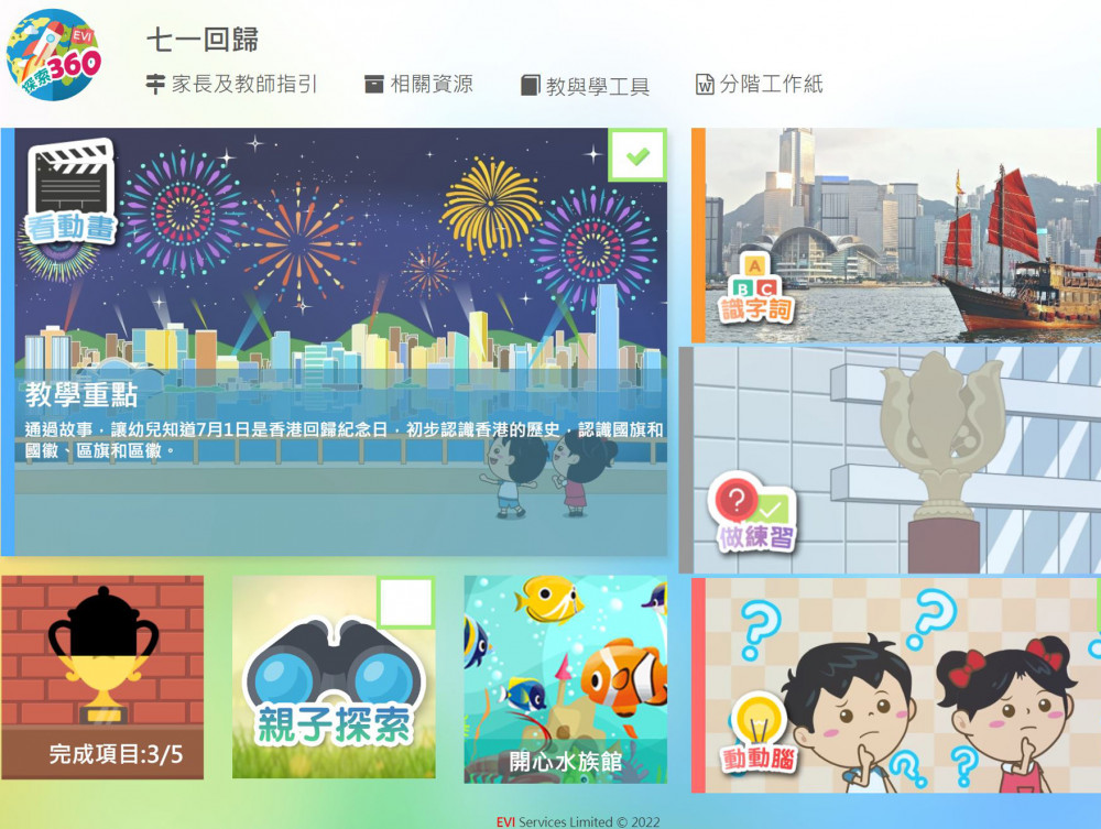 【橙訊】香港教育大學與網上自主學習平台EVIGarten攜手,推出「七一回歸」電子學習資源,以生動有趣的方式,向幼稚園及小學生展示與香港回歸有關的知識及資訊,內容包括故事動畫、STEM 活動、趣味知識、影片和新聞時事。有關資源將免費開放予全港幼稚園及小學使用,幫助幼童認識國家,並從小培養正確的國家觀念。