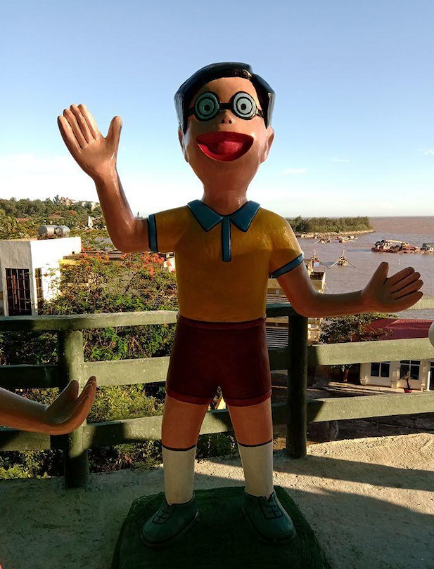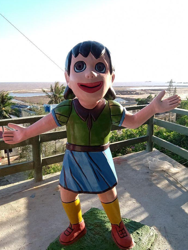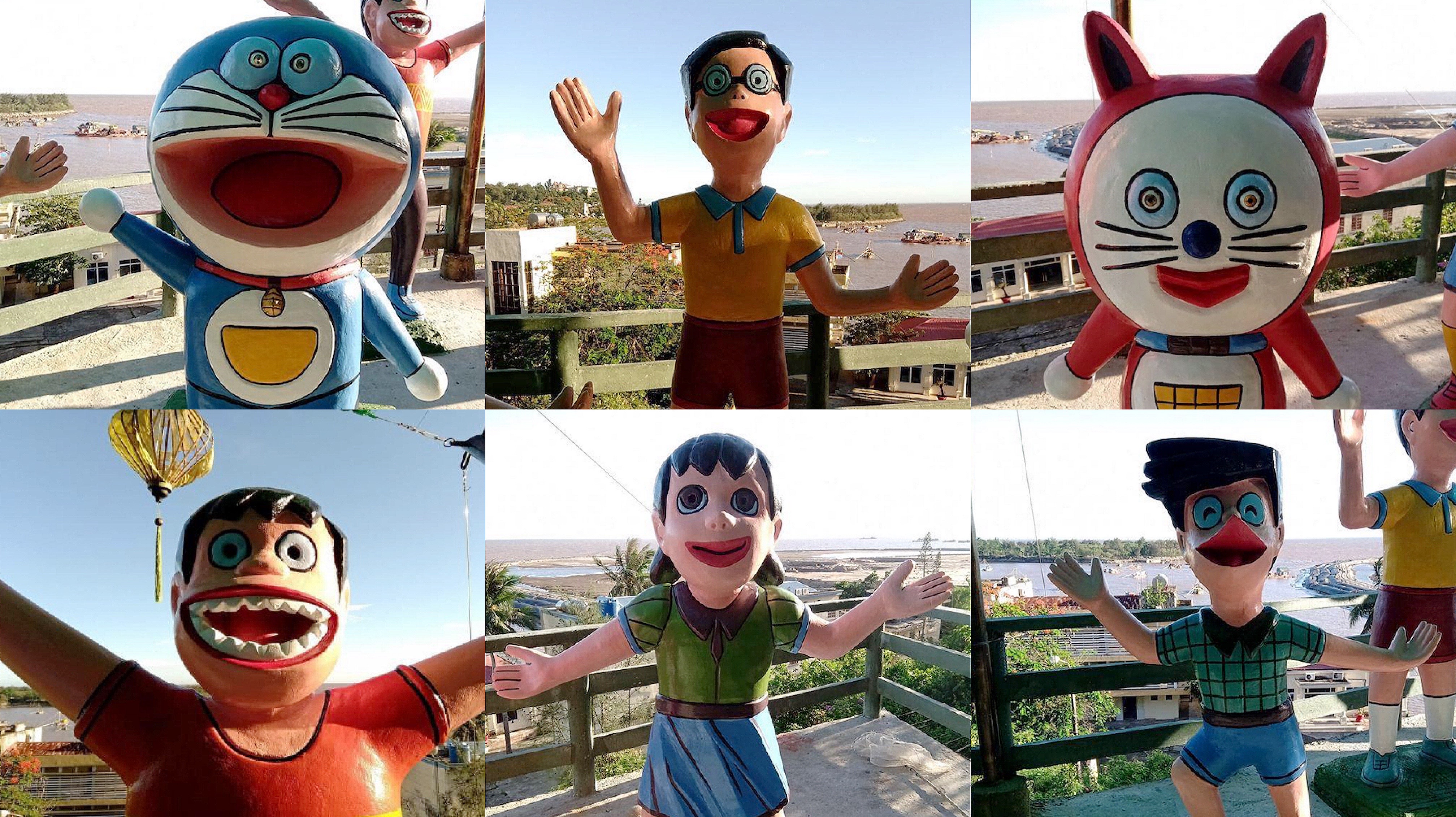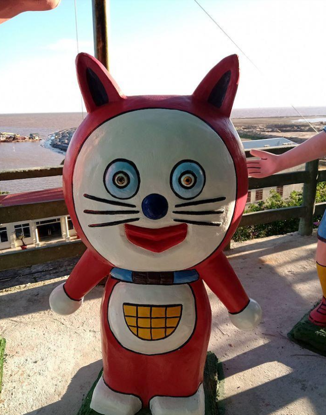這個位於印尼的多啦A夢主題公園,裡面有不同角色的雕像,例如多啦A夢、大雄、靜香、小夫、胖虎及多啦美等。但他們的樣子和動畫中的大不同,更算得上是幅射版、猥瑣版。例如胖虎的嘴巴會和臉一樣大,小夫的樣子十足十河童,多啦美更是由黃色變成紅色,所有雕像可謂十分「照騙」!
