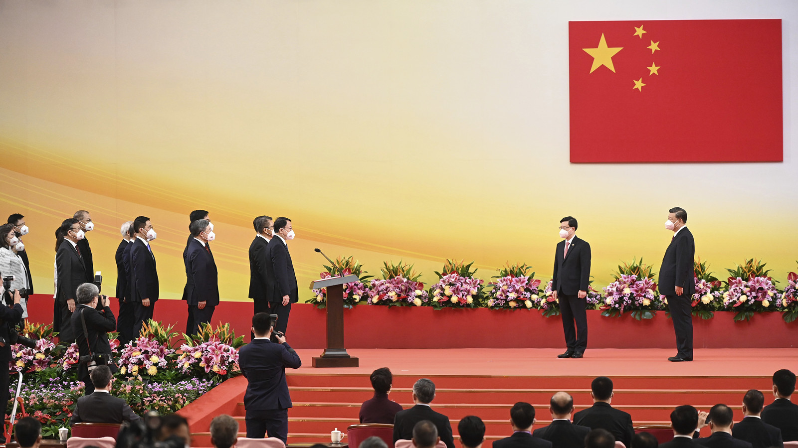 李家超完成宣誓後率領一眾主要官員上台,再由政務司司長陳國基帶領主要官員宣誓就任。之後李家超向習近平逐一介紹第六屆特區政府各名主要官員。