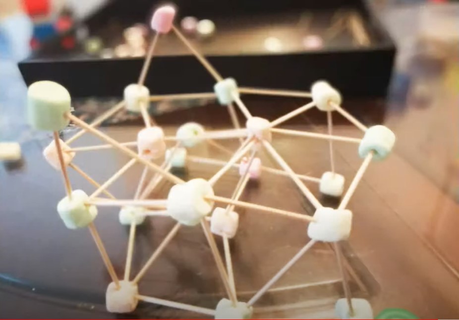 用竹籤和棉花糖分別作為支柱和連接點,可以搭建出甚麼樣的結構呢?這就全憑孩子的想象力和構建能力。這個遊戲花樣豐富,家長可以由簡單的圖形開始,例如挑選一些常見的星座,比如:北斗七星、獅子座,讓孩子對照著圖片搭建自己的棉花糖星座。在平面二維的基礎上,可以慢慢提升難度,讓孩子搭建金字塔、立方體等立體結構。為了增添遊戲的趣味,在搭建立方體之前可以先給孩子看看立方體的樣子,讓他們思考大概需要多少顆棉花糖和幾個竹籤才能搭建出這個立方體,之後讓孩子自己去動手搭建,看看自己預測的數量是否準確。對於空間思維和推理能力比較好的孩子,可以讓他們再挑戰一些更複雜的空間結構,例如搭一個微型「艾菲爾鐵塔」,家長還可以和孩子比一比誰的作品高度最大,並且比較下哪種結構比較穩定。