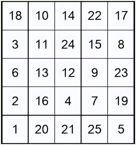 舒爾特方格是在紙上畫出的5X5格子,格子內無規律地寫上1-25的數字,遊戲需要讓孩子按照1-25的順序依次從中找出數字並大聲唸出,每次記錄完成的時間。這個遊戲常被用來鍛煉專注度,隨著孩子完成得越來越快,成就感也會大大提升。對於年紀較小的孩子,可以從3X3的9宮格開始,熟練之後再慢慢增加難度。