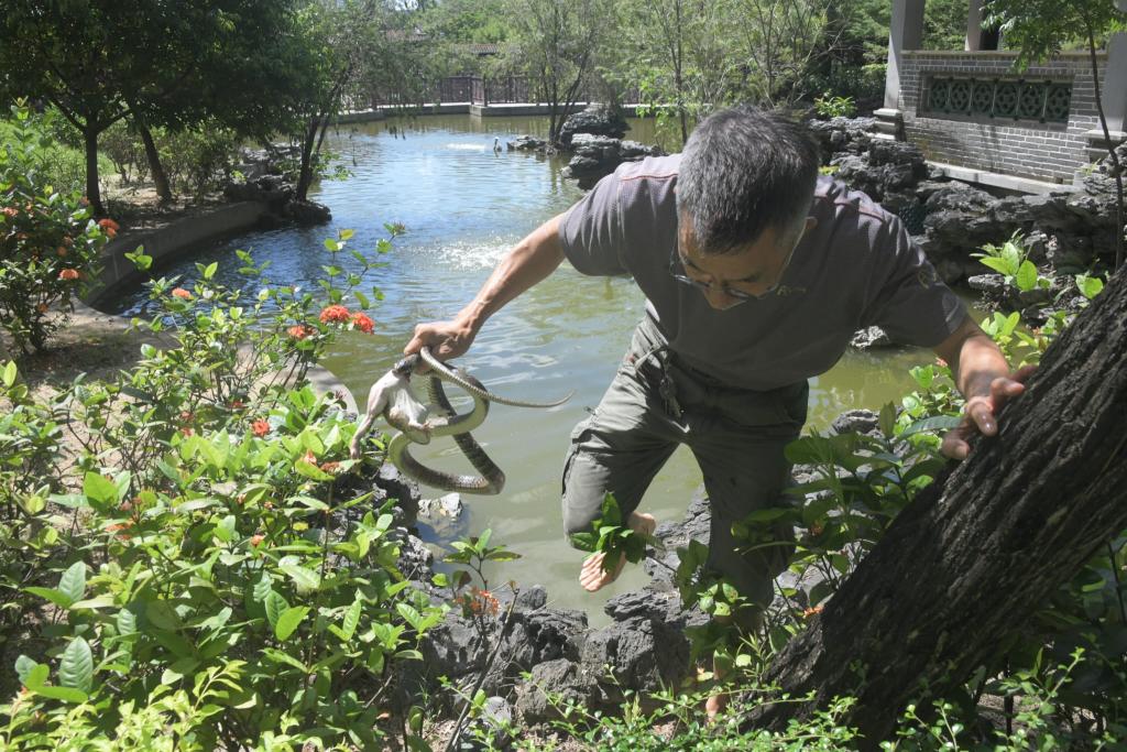 蛇王業到場後手到拿來,成功捕捉兩條水律蛇。