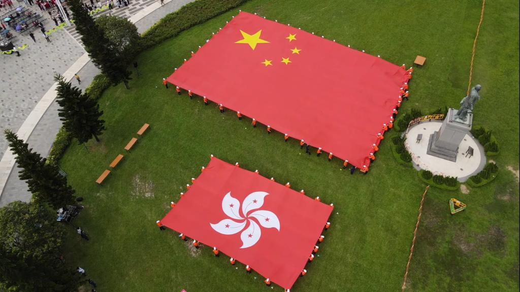 一支20米x30米的巨型國旗及一支10米×15米的巨型特區區旗於中西區中山紀念公園草坪成功展出。主禮嘉賓中西區民政事務處高級聯絡主任劉宇恆致辭時提到,今次是中西區首次展示巨型國旗及區旗。