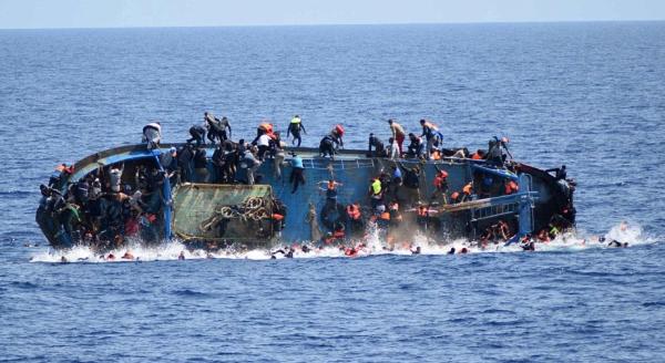 一艘載有數以百計難民的船隻翻沉,險象環生。圖片來源:網絡