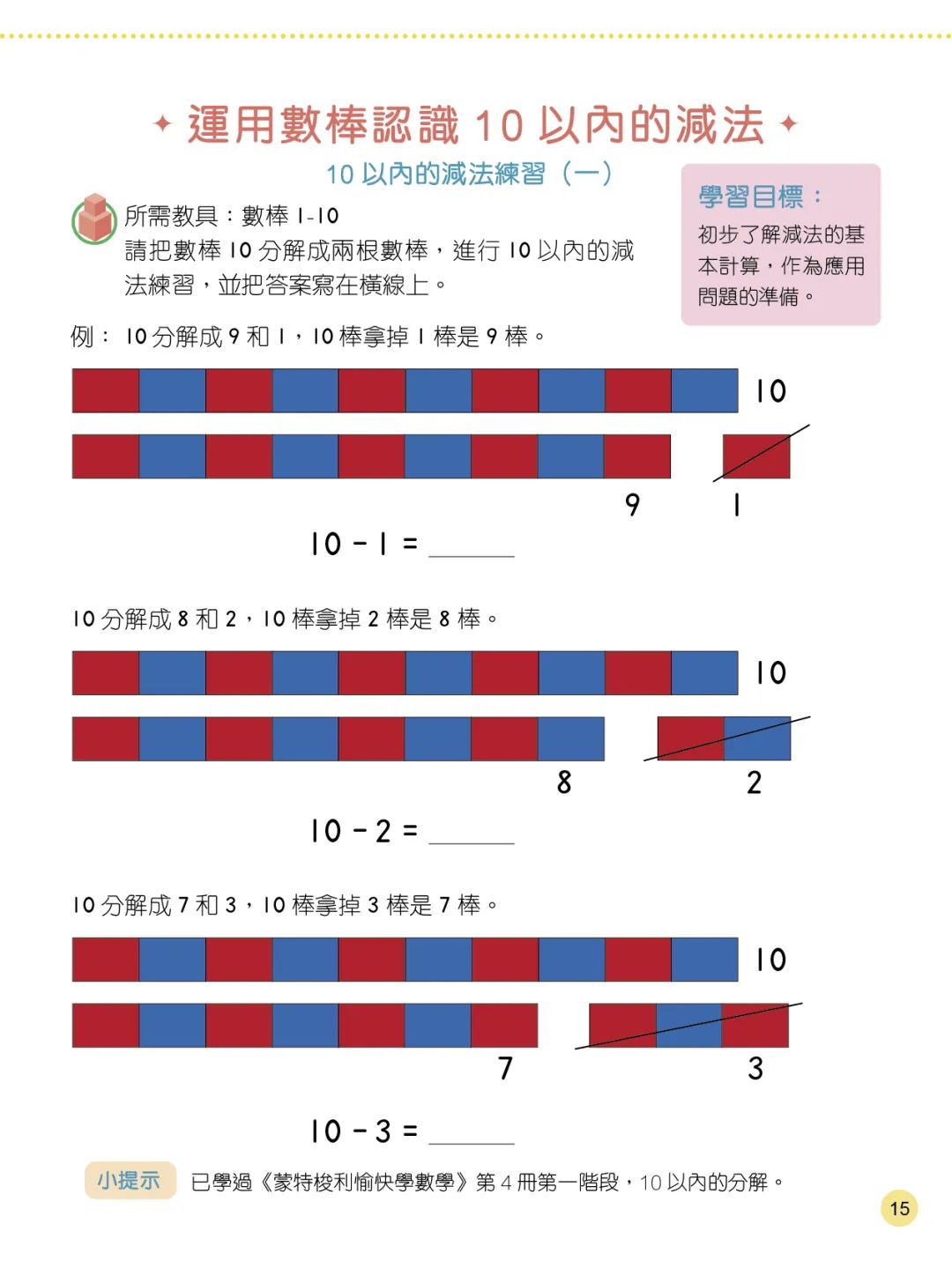 從運用數棒進行分解和組合,進階至學習基本的加減法。